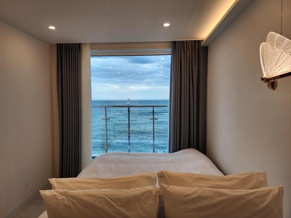 ✔️ ¡Sobre todo, nos enfocamos en dormir! Agregué espuma viscoelástica al colchón, ropa de cama suave de hotel y la almohada más cómoda que he usado. ¡Por supuesto, hay cortinas opacas para aquellos que son sensibles a la luz! ¡La insonorización también es la mejor con doble acristalamiento! ✔️ ¡A 30 segundos caminando de la playa de Deungdae! ¡Escucharás las olas desde el balcón por la noche, y cuando te despiertes por la mañana, admirarás las vistas al mar azul y al cielo todos los días! (Vista abrumadora de la cama) Disfruta del ambiente acogedor durante mucho tiempo, donde puedes relajarte mientras contemplas el mar que se ve diferente todos los días. ✔️ El centro de Sokcho Todas las atracciones turísticas están a menos de 10 km y en la ubicación más conveniente💕 de Soyaste