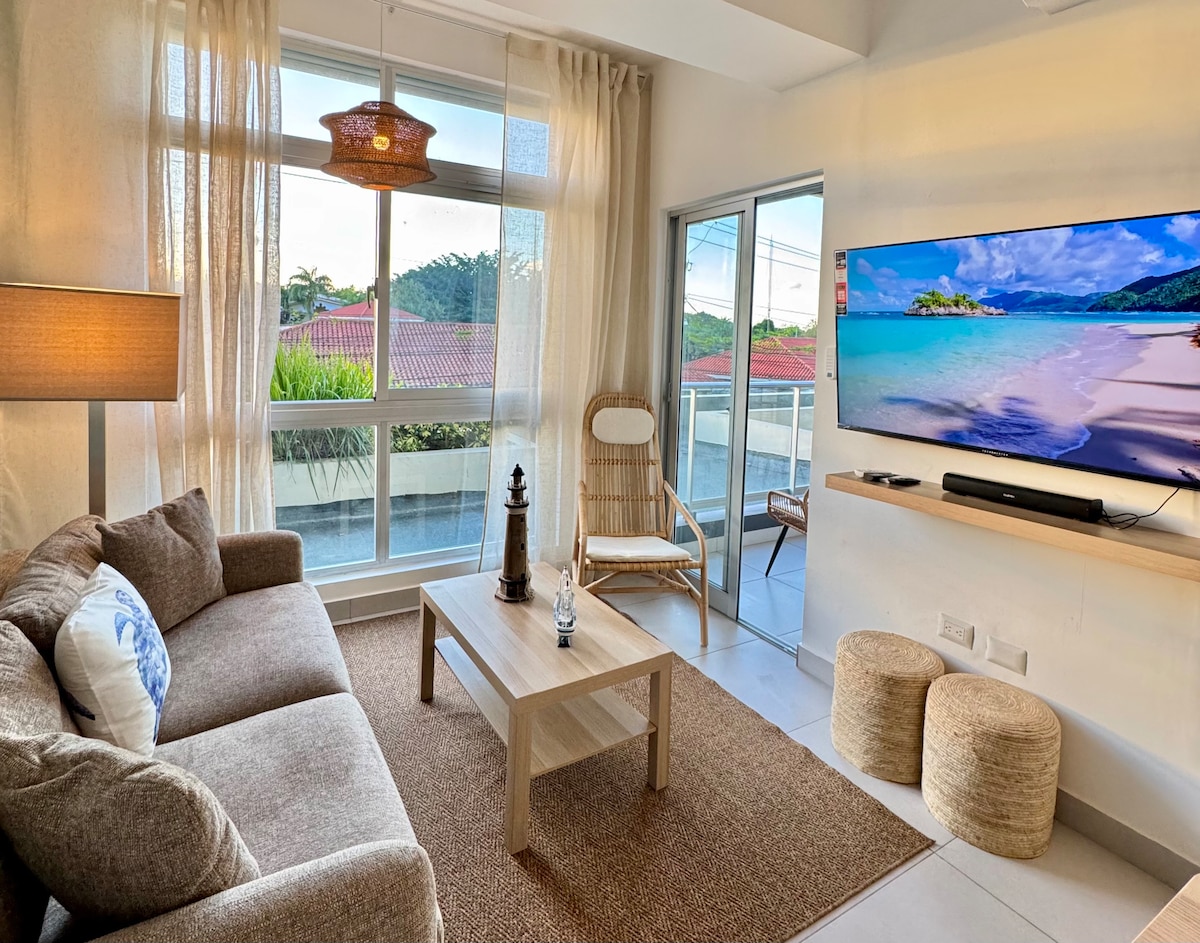 Welcome to your relaxing home away from home. This spacious coastal retreat is just a short walk from the beautiful beaches of Juan Dolio. Designed for comfort and convenience, this new 1-bedroom apartment is perfect for couples, friends, or travelers looking to enjoy the Caribbean at a slower, more peaceful pace. Start your mornings with coffee and ocean breezes, spend your afternoons soaking up the sun, and return to a calm, comfortable space created for rest and connection.