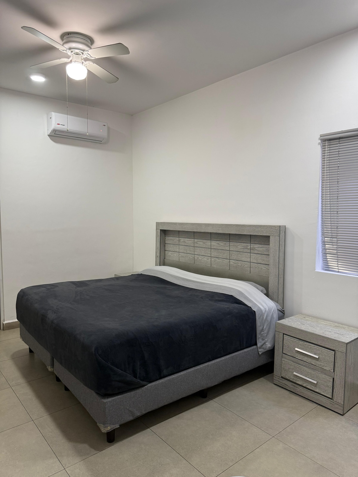 Departamento independiente , privado, en planta alta, habitación para dos personas en fraccionamiento privado. Recién remodelada y equipada con lo necesario para una cómoda estancia vacacional o de trabajo. Con accesos controlados, guardia de seguridad y estacionamiento. Ubicada estratégicamente entre el Centro de la Ciudad y el Aeropuerto Internacional Mariano Escobedo. Caminando se llega a Liverpool "Paseo La Fe".