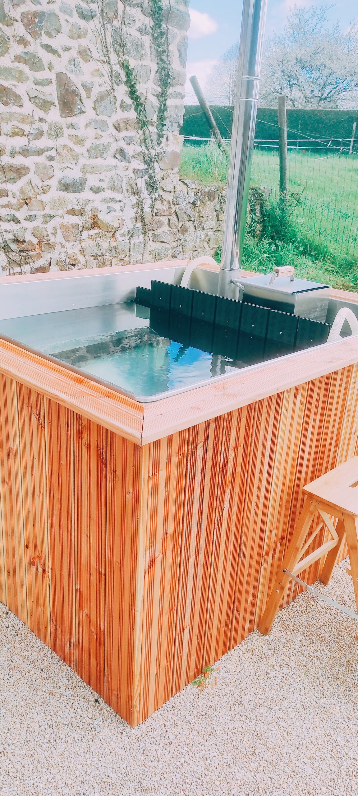 Mucho más que un simple alojamiento. Es una verdadera experiencia inmersiva donde el lujo se encuentra con la naturaleza, diseñada para darle la bienvenida cómodamente, este remanso de paz se encuentra en el corazón de las praderas donde pastan nuestras vacas Aberdeen Angus. Tanto si quieres relajarte en la bañera de hidromasaje, observar las estrellas desde la cama o simplemente disfrutar de la tranquilidad del campo, esta tiny house te promete momentos mágicos y memorables.