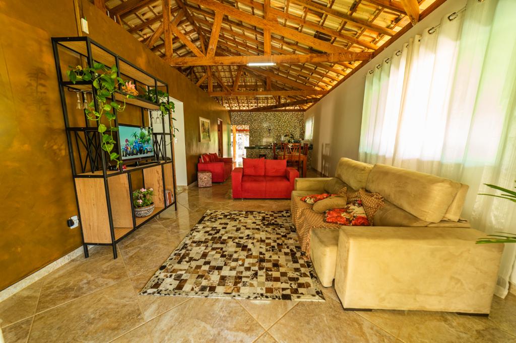 Casa con terraza gourmet, cocina amplia, 2 suites, lago con cenador, campo de fútbol con césped, piscina con spa y bar molhado, amplia zona verde y llana, chimenea exterior, garaje cubierto para 4 coches en más de 10.000 m2 de zona verde. Vive momentos inolvidables en este lugar único e ideal para familias.