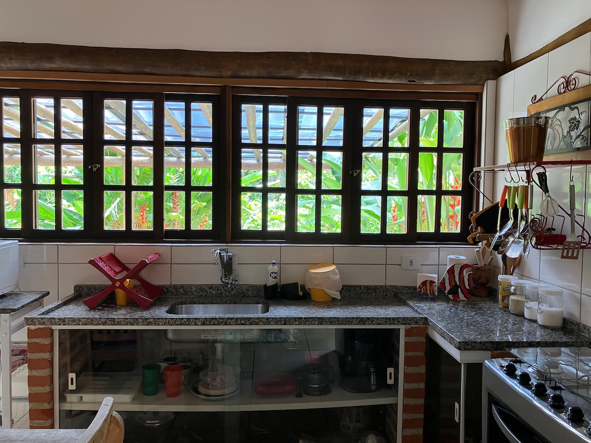 La casa está en el bosque, rodeada de naturaleza, cascadas y pájaros. ¡Tiene una estructura de madera con un acabado rústico, cocina completa, siendo muy cómoda y acogedora! Tenemos 3 habitaciones con capacidad para 12 personas, una gran área de esparcimiento en medio de la naturaleza, con piscina, zona de barbacoa, además de senderos con acceso privado a un arroyo. Cerca de mercados y playa. ¡Ambiente perfecto para mucho descanso, conexión con la naturaleza y ocio! ¡Ideal para familias y grupos de amigos!