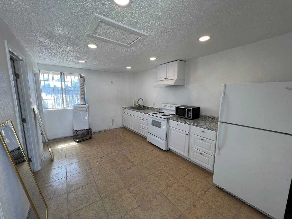 New construction 2 Bed 1 Bath Modern Hidden Gem! This Guesthouse has its own private yard, entrance & driveway. At just under 600sqft, No stone was left un-turned when Designing this space. This open concept Home features a living area with a Sleeper Sofa, 50" Roku TV, 4 chair dining table, A Remote controlled AC & Heat system. Full Kitchen with Microwave, Oven, Fridge & Washer/Dryer. Full Bathroom with Tub & Shower. 2 bedrooms, 1 with a queen bed & the other w 2 twin beds.