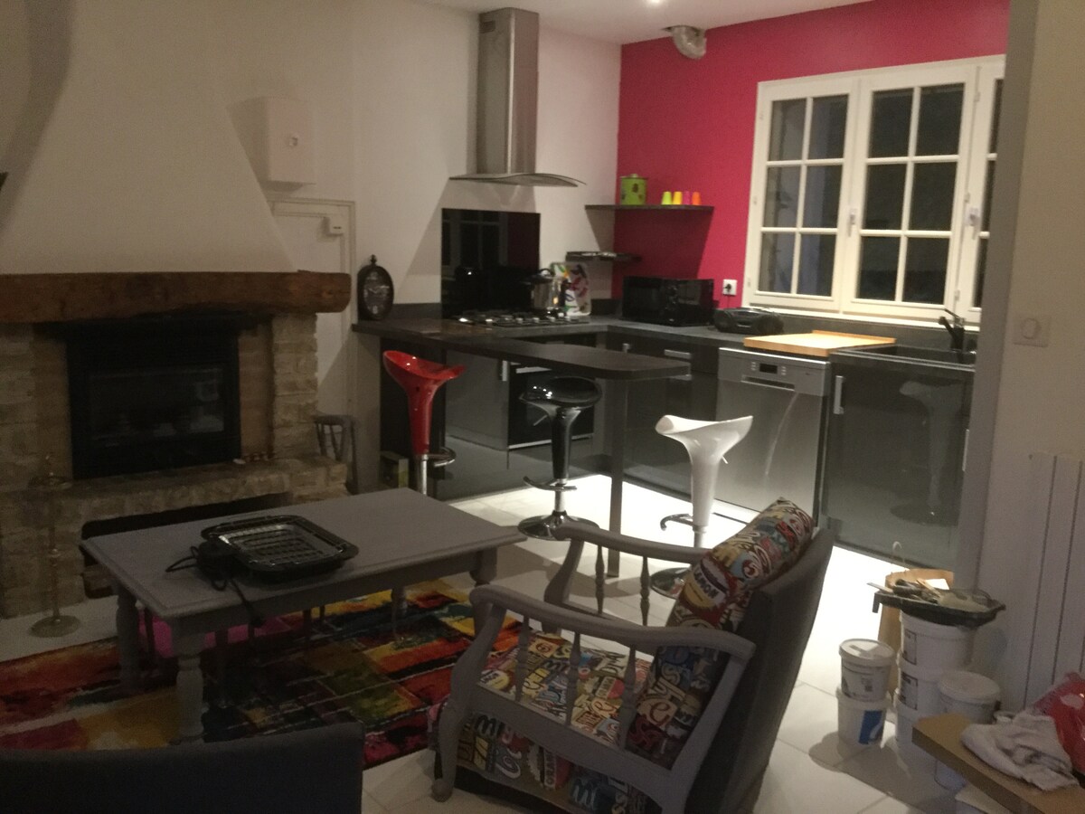 Acogedora casa rural 3* (3 espigas) de 40 m2, cerca de MAIF, MSA, DARVA, Altima Assurances y la zona comercial de Chauray. A 20 minutos de la estación de tren y del centro de la ciudad Alojamiento amueblado en el piso de arriba de una dependencia sobre los garajes de una propiedad cerrada, acceso por escalera exterior de piedra que da a una terraza de 16 m2. Calefacción central, conexión WiFi, TV de pantalla plana. Cocina americana totalmente equipada (horno, LV, nevera, congelador, microondas, cafetera Senseo. Cama de 160 + equipo BB Cuarto de baño con gran ducha italiana.