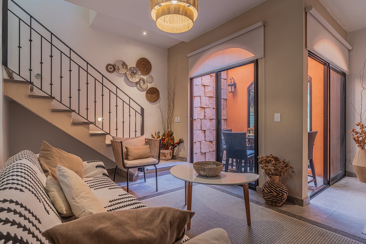 Vive una experiencia boutique en "Casa Olivos", un refugio de serenidad a solo 10 minutos del vibrante corazón de San Miguel de Allende. Nuestra residencia de dos habitaciones combina diseño y comodidad contemporánea, roof garden con vistas panorámicas y áreas comunes exclusivas que incluyen cancha de pádel, gimnasio, alberca y zona de juegos. Un equilibrio perfecto entre la riqueza cultural del centro histórico y la tranquilidad de nuestro condominio.