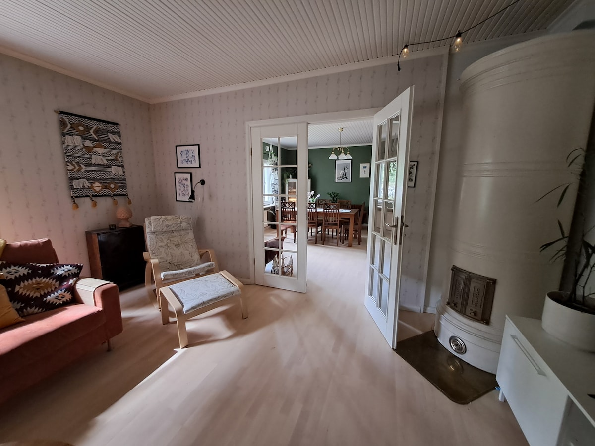 Trae a tu familia a este increíble alojamiento con mucho espacio para divertirte. Los hornos viejos establecen el tono mientras caminas por el suave piso de abedul. Bebe tu café matutino en el jardín o en caso de lluvia en la terraza de cristal. Salchichas a la parrilla o malvaviscos en el fuego. En el patio, también hay un antiguo edificio de sauna a tu disposición (según lo acordado). Nuestra casa es de la década de 1950 y ha sido renovada con respeto por la tradición y la economía circular.