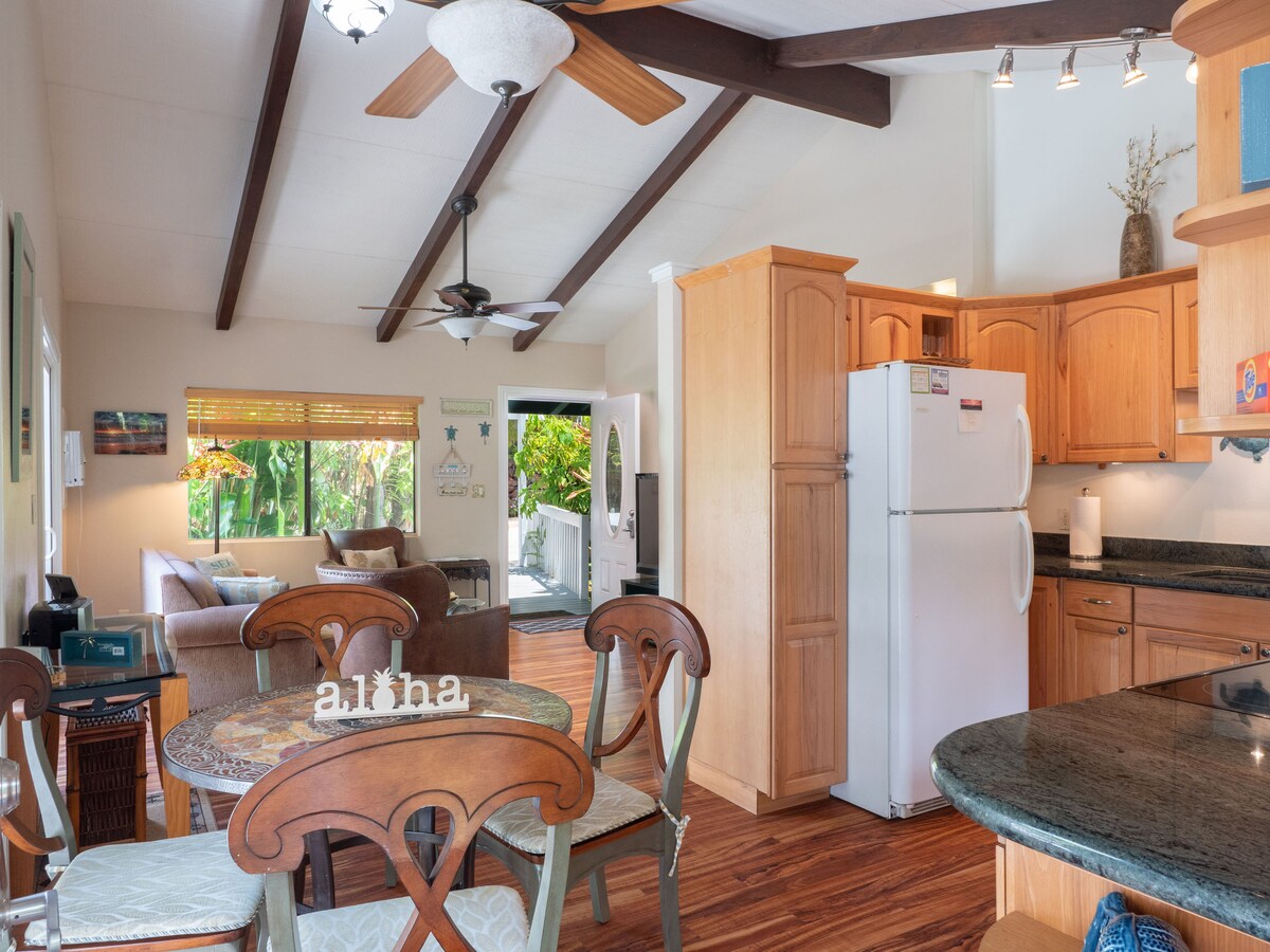 Romántico, privado, un santuario, bellamente decorado, encanto local y dormir con los sonidos del río Wailuku son algunas de las cosas que nuestros huéspedes dicen sobre nuestra posada. Una bañera de hidromasaje American Whirlpool es nuestra nueva característica junto con el aire acondicionado, lavadora/secadora, cocina completa y una gran ducha en tu baño privado. Una cama tamaño king, wifi, parrilla, televisión, ventiladores y toallas de playa son servicios estándar. ¡El cenador independiente es perfecto para leer, meditar o simplemente no hacer nada!