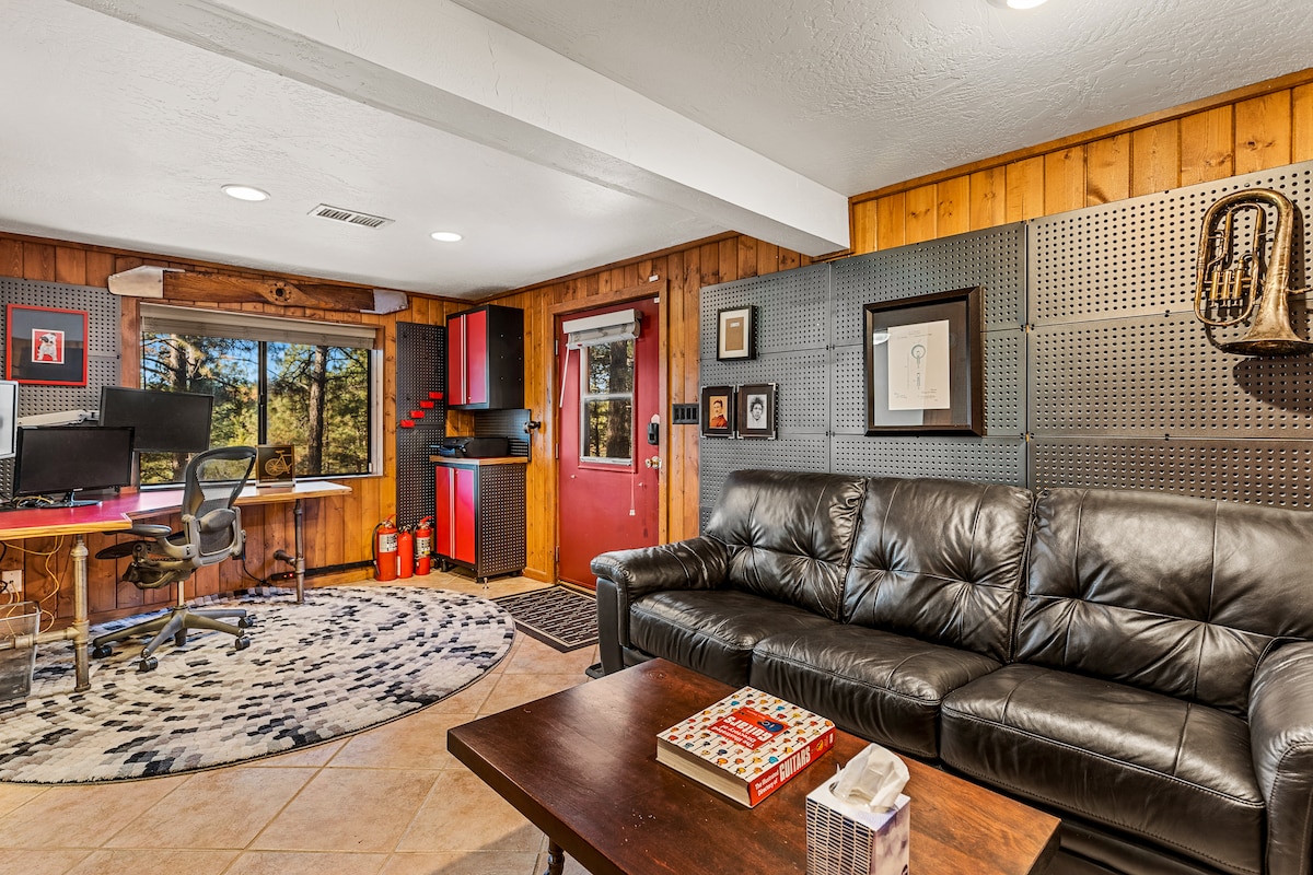 ¡Escápate a nuestra acogedora cabaña de 2 dormitorios en el bosque en Flagstaff para 4! Este refugio de un solo nivel ofrece una combinación perfecta de encanto rústico y comodidad moderna. Cuenta con una chimenea de gas, un espacio de trabajo dedicado con conexión Wi-Fi rápida, una terraza privada con una chimenea y un patio trasero cercado. Ideal para el trabajo, la relajación y la aventura, a pocos minutos del centro de la ciudad y de las rutas de senderismo. ¡Tu escapada perfecta al norte de Arizona te espera!