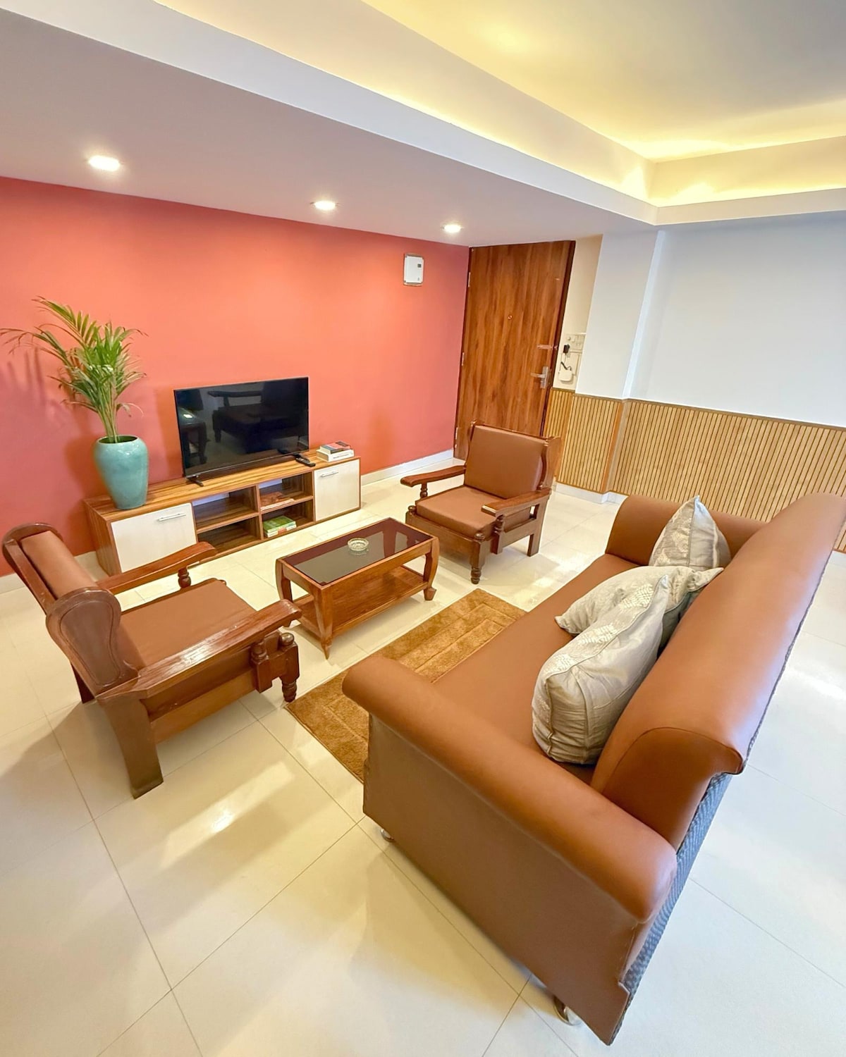 Welcome to our cozy and thoughtfully designed 3-room apartment, perfect for families, groups, or remote workers! Each bedroom features a comfortable queen bed, ceiling fan, wardrobe with locker, and its own unique vibe Room 1: Entertainment room with TV Room 2: The only room with AC workspace & story books Room 3: Recreational space to relax or stretch Enjoy a functional kitchen, high-speed WiFi, a common area with both Indian & western toilets, separate bathroom with geyser, and free parking!