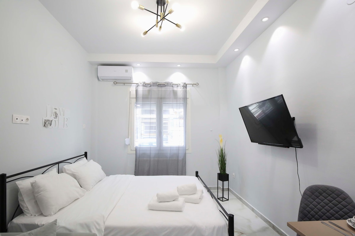 A newly renovated studio in a quiet, safe neighborhood in the city center with both air conditioning and heating. Perfect for couples or lone travelers. Ένα πρόσφατα ανακαινισμένο στούντιο σε μια ήσυχη, ασφαλής γειτονιά στο κέντρο της πόλης με κλιματισμό και θέρμανση με φυσικό αέριο. Ιδανικό για ένα ζευγάρι ή έναν ταξιδιώτη.