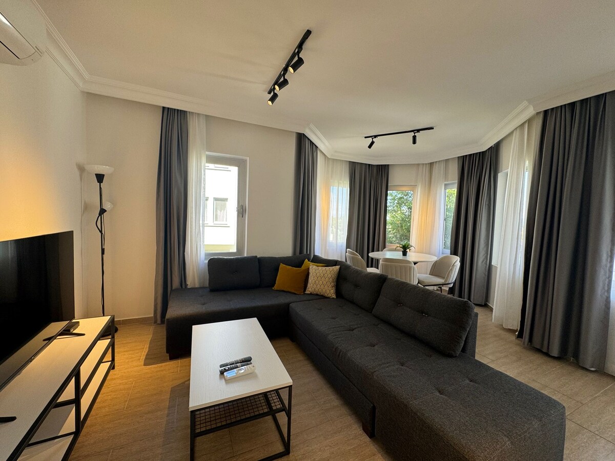 ¡Te damos la bienvenida a Çimentepe Residence Deluxe! Puedes disfrutar del mar en la playa pública a solo 10 pasos de la residencia, ir de compras a Yalıkavak Marina y disfrutar de los famosos lugares de entretenimiento de Bodrum por la tarde. Consta de 2 habitaciones, 2 baños, sala de estar, sala de estudio (una cama supletoria) y balcón, el apartamento de residencia te espera, nuestros valiosos huéspedes.