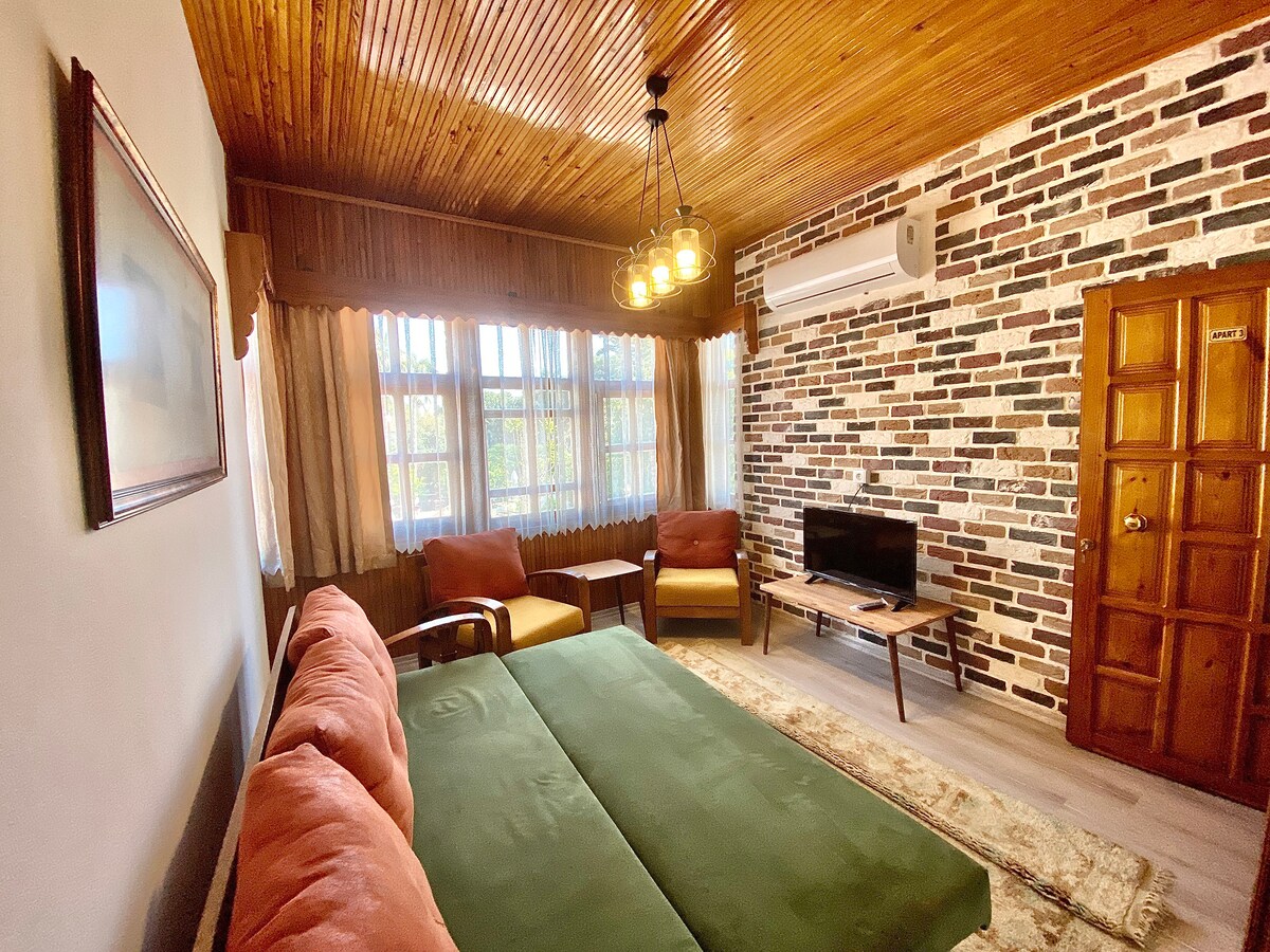 En el corazón de Antalya(Oldtown) apartamentos tranquilos y acogedores (1+1) en un hermoso edificio arquitectónico que construyó apropiado para el espíritu de la ciudad vieja. Tiene capacidad para familias y parejas. Nuevos muebles modernizados y condiciones de aire para todas las habitaciones. Tenemos 4 apartamentos separados en un edificio. Casi todos los lugares turísticos, centros comerciales y playas están a pocos pasos. También puedes usar el tranvía para llegar desde el aeropuerto o la estación de autobuses. La estación más cercana es "ismetpasa"