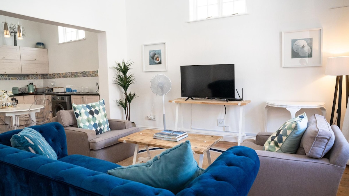 Una propiedad única con las mejores vistas de la costa: el mar a un lado y la montaña al otro. Un espacioso loft bajo las vigas de un sólido y encantador bungalow eduardiano. Iluminado por el sol, sereno, espacioso, elegante y cómodo. Camas grandes, ropa de cama 100 % algodón, baño de lujo, cocina equipada. A 5 minutos a pie del pueblo. ¡ACEPTO NÓMADAS DIGITALES! - Wifi excelente y estable. - Mesa de trabajo dedicada. - Siempre hay electricidad y wifi, incluso durante la reducción de carga (inversor).