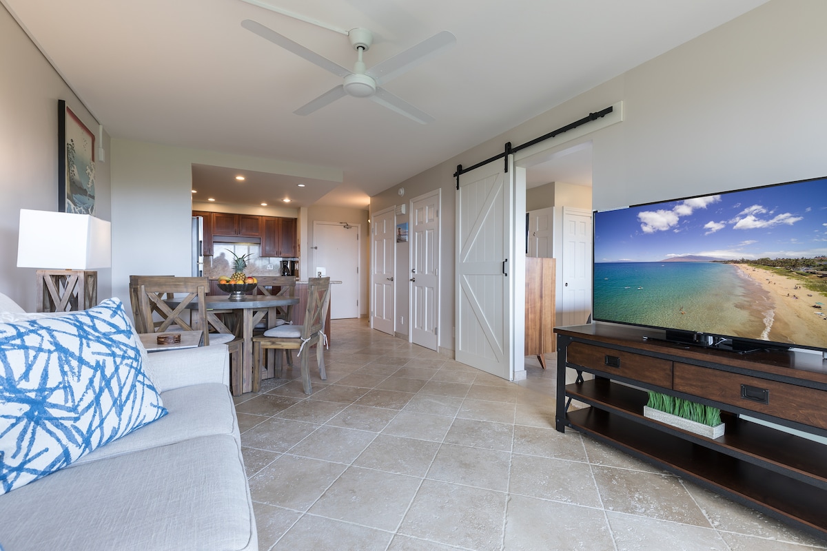 Apartamento de lujo de 1 dormitorio y 2 baños que ha sido completamente renovado. Nuestro apartamento tiene preciosas vistas al mar, así como vistas a los exuberantes jardines tropicales y a la piscina. Cuenta con una cocina gourmet totalmente equipada con electrodomésticos de alta gama, especias variadas, café y té. Las vistas del atardecer desde el lanai son impresionantes. Si nuestro apartamento no está disponible durante los días de tu viaje, consulta la disponibilidad de nuestro otro apartamento Wailea Palms en https://www.airbnb.com/rooms/1728525 El alojamiento no es adecuado para niños o bebés.