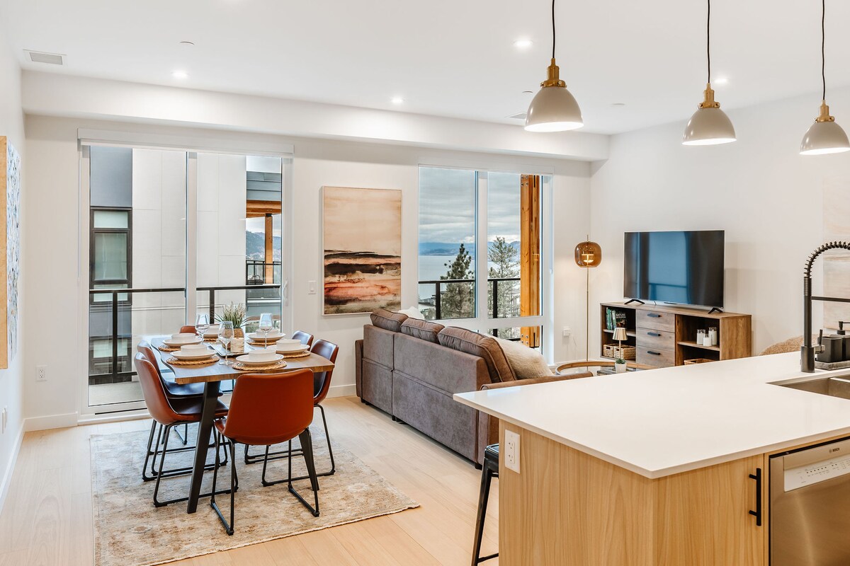 Welcome to Vita Retreat. New beachfront escape on Lake Okanagan! Our smart suites are ideal for couples or small families, featuring a King Size bed and a pull-out double sofa. Enjoy a heated outdoor pool, indoor gym, free EV chargers, and dedicated parking. Your suite includes a stocked kitchen, washer/dryer, AC, Wi-Fi, and a patio with BBQ. Explore Okanagan Landing, known for beaches, parks, cycling trails, and stunning views. Book now for comfort and convenience by the lake at Vita Retreat!
