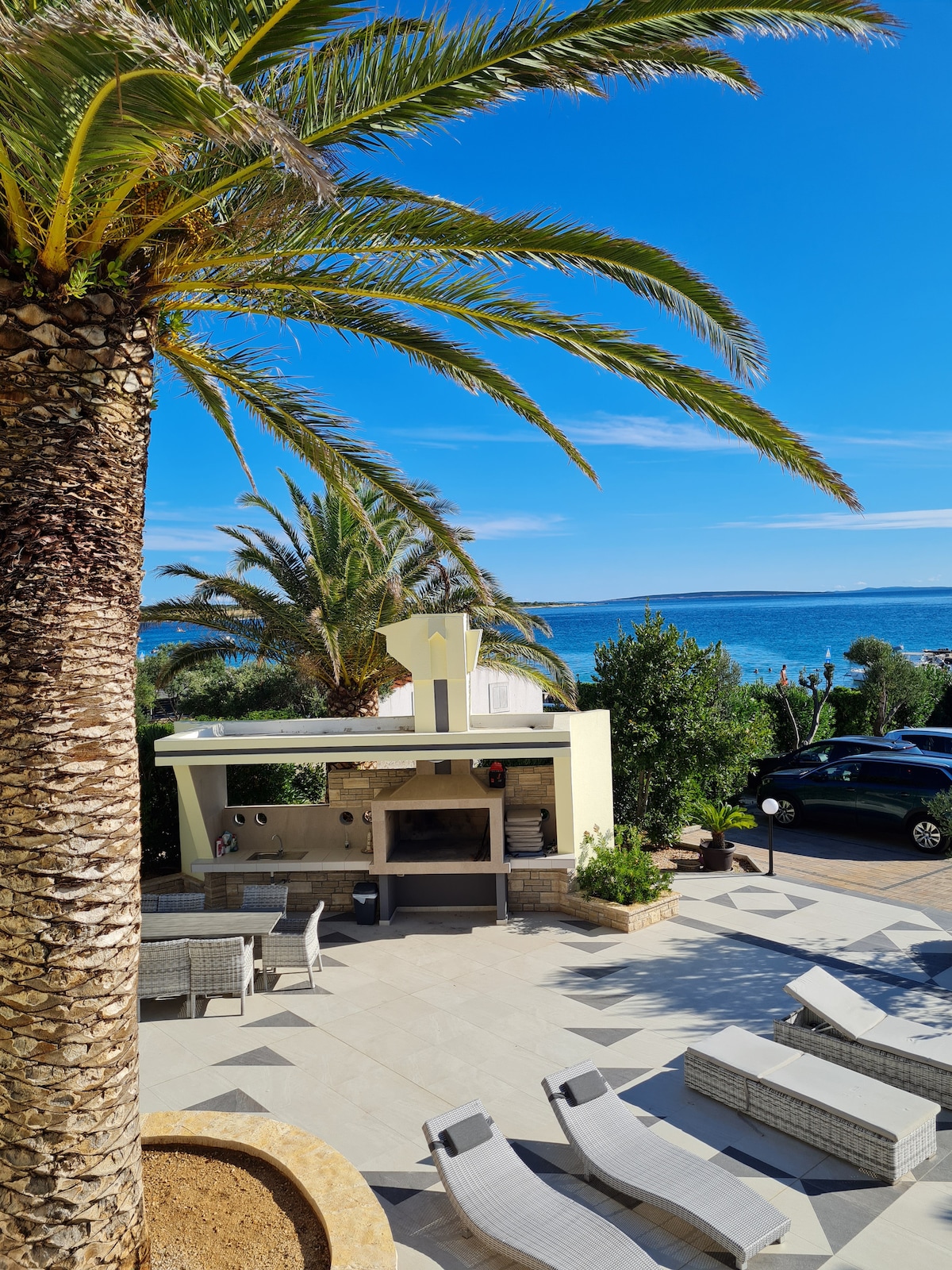 Hay un apartamento más grande, un apartamento más pequeño y un estudio. Los apartamentos están recién decorados, con espacios de estacionamiento seguros, en el centro . Cerca del puerto deportivo ACI, campo de fútbol, escuela, playa a 200 metros de distancia. Posibilidad de utilizar la barbacoa en el patio exterior. Los apartamentos tienen vistas al mar y desde los dormitorios y desde la estancia. Cada habitación tiene su propio balcón y baño privado. Estancia que incluye mesa de comedor en la cocina y terraza con vistas al mar. Se admiten mascotas por una tarifa adicional