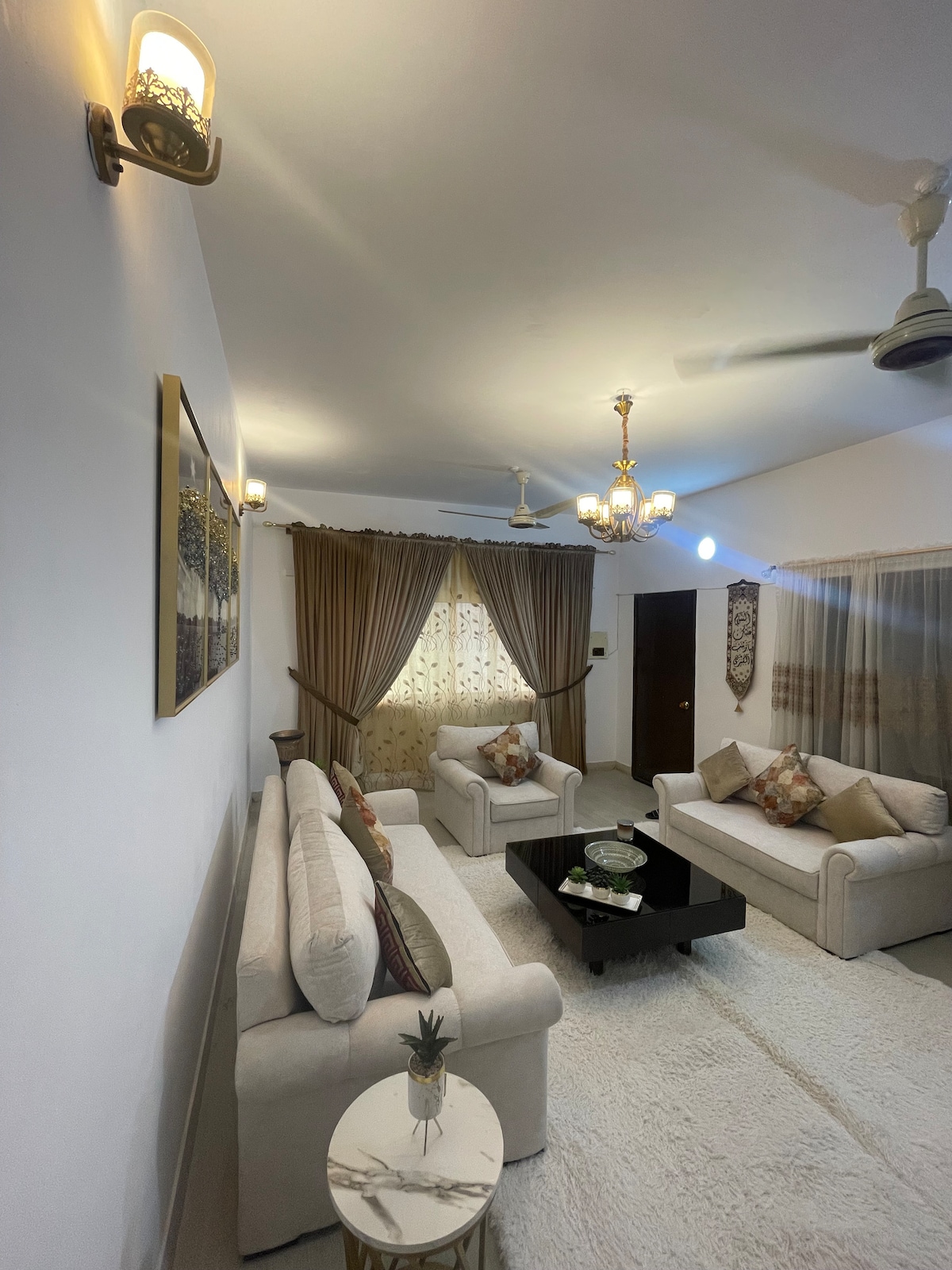 ¡Te damos la bienvenida a tu acogedor y seguro apartamento de 2 dormitorios en la extensión de la fase 7 de DHA! Este espacio luminoso y con aire acondicionado ofrece baños adjuntos, una cocina compartida y acceso a la azotea. Disfruta de una gran vista, luz natural y un ambiente tranquilo. Ubicado cerca de un chai dhaba, restaurantes, parques y un banco con seguridad 24/7, la comodidad está en la puerta de tu casa. ¡Te esperan un televisor inteligente, WiFi rápido, fácil llegada y una estancia cómoda! Perfecto para familias, viajeros solitarios o profesionales. ¡Reserva ahora y siéntete en casa!