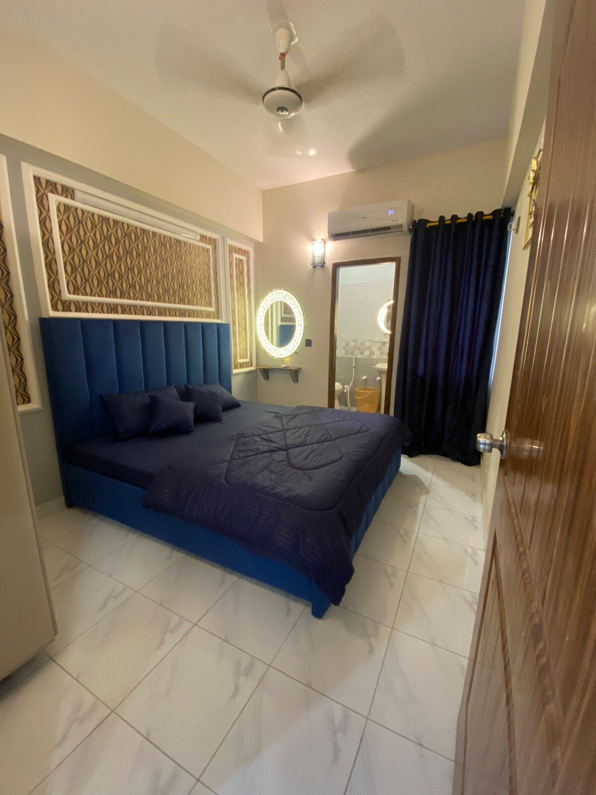 Te damos la bienvenida al departamento amueblado, donde tu viaje comienza a solo 10 minutos del bullicioso Aeropuerto Internacional de Jinnah. Disfruta de un acceso perfecto a la ciudad, comedor a la puerta y exploración sin esfuerzo con vigilancia militar cercana las 24 horas, los 7 días de la semana taxis privados en Karachi. Tu comodidad, nuestro compromiso. Reserva ahora y disfruta de una estancia excepcional ser parte de tu inolvidable Karachi aventura. Te damos la bienvenida a un paraíso donde la comodidad se une a la tranquilidad