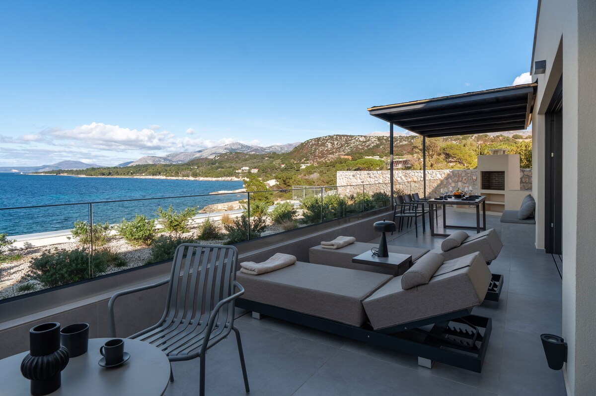 Una casa de nueva construcción abre sus puertas este año, por primera vez para dar la bienvenida incluso a los huéspedes más exigentes. La privacidad que ofrece la villa junto con la arquitectura que combina lo moderno con la decoración minimalista, en combinación con los espacios cómodos y la impresionante fachada con vistas al azul infinito del mar Jónico, lo convierten en un lugar acogedor y encantador. ¡Disfruta de tu estancia en este espacio relajante y elegante!