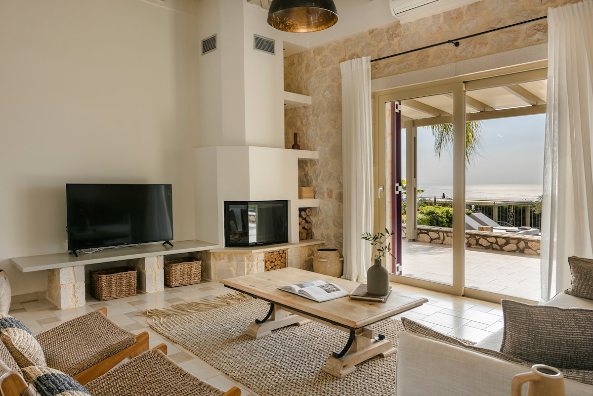 Una casa de nueva construcción abre sus puertas este año, por primera vez para dar la bienvenida incluso a los huéspedes más exigentes. La privacidad que ofrece la villa junto con la arquitectura que combina lo moderno con la decoración minimalista, en combinación con los espacios cómodos y la impresionante fachada con vistas al azul infinito del mar Jónico, lo convierten en un lugar acogedor y encantador. ¡Disfruta de tu estancia en este espacio relajante y elegante!