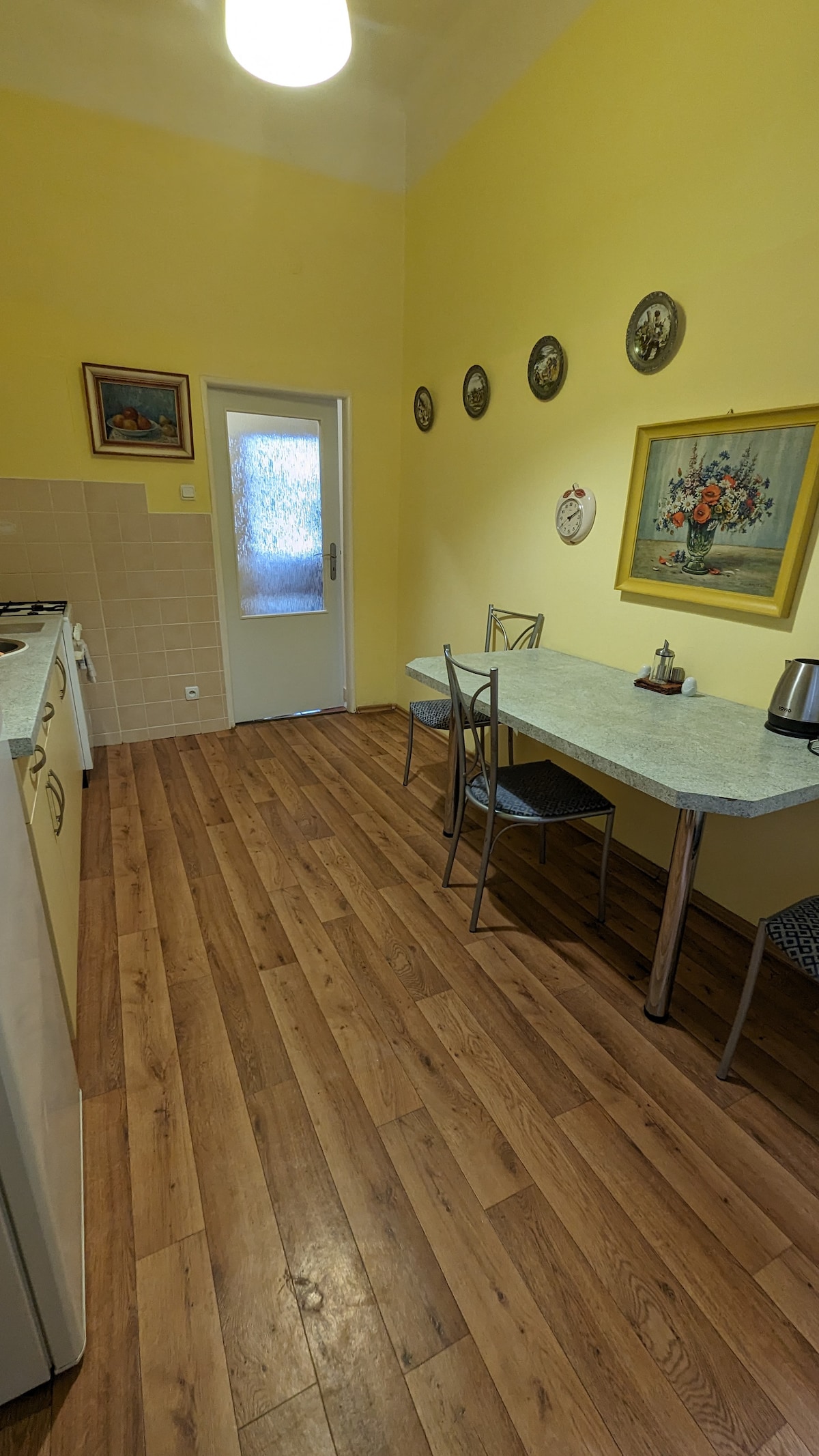 El departamento está ubicado en el centro histórico de la ciudad, 65 metros cuadrados. Cerca hay una columnata con manantiales minerales, un centro médico, una piscina, 3 supermercados, estacionamiento, cuarto piso, un ascensor. Inodoro, baño (ducha) - por separado. Altura del techo 3,3 m. Internet gratuito. En el segundo piso de esta casa hay 1 departamento más para anfitriones. Conveniente para un grupo. El estacionamiento está disponible por una tarifa adicional de 12 euros por auto/día (excepto durante el Festival Internacional de Cine de Karlovy Vary), se requiere reservar con anticipación.