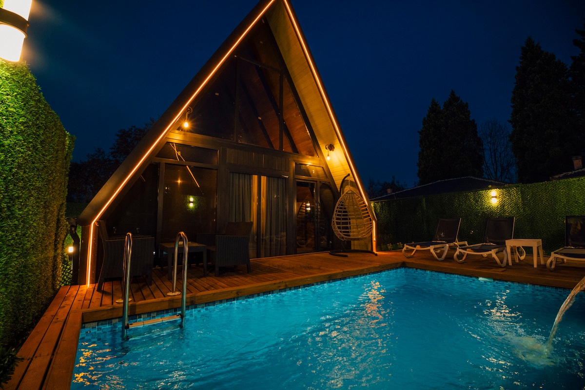 En el bungaló My Gorgeous Sapanca villa, disfrutarás de la paz de estar en contacto con la naturaleza y comenzarás el día con el canto de los pájaros. ☀️💫🍁🍂 Desayuno para🌟 2 personas🍳 🌟1 dormitorio (1 planta tipo loft con vistas al lago) Alojamiento para hasta 6 personas✔️ 🌟Gran piscina climatizada privada🏊♀️ Gran zona🌟 de fogata donde podrás mantener agradables conversaciones que te calentarán por la noche🔥🔥 Amplio jardín privado🌟 totalmente protegido Gran columpio Gran mesa de jardín 🏡 🌟 Barbacoa🍗 🌟Netflix📺 Detector de🌟 humo🧯 y extintor 🌟Entrada: 14:00 🌟Salida: 11:00