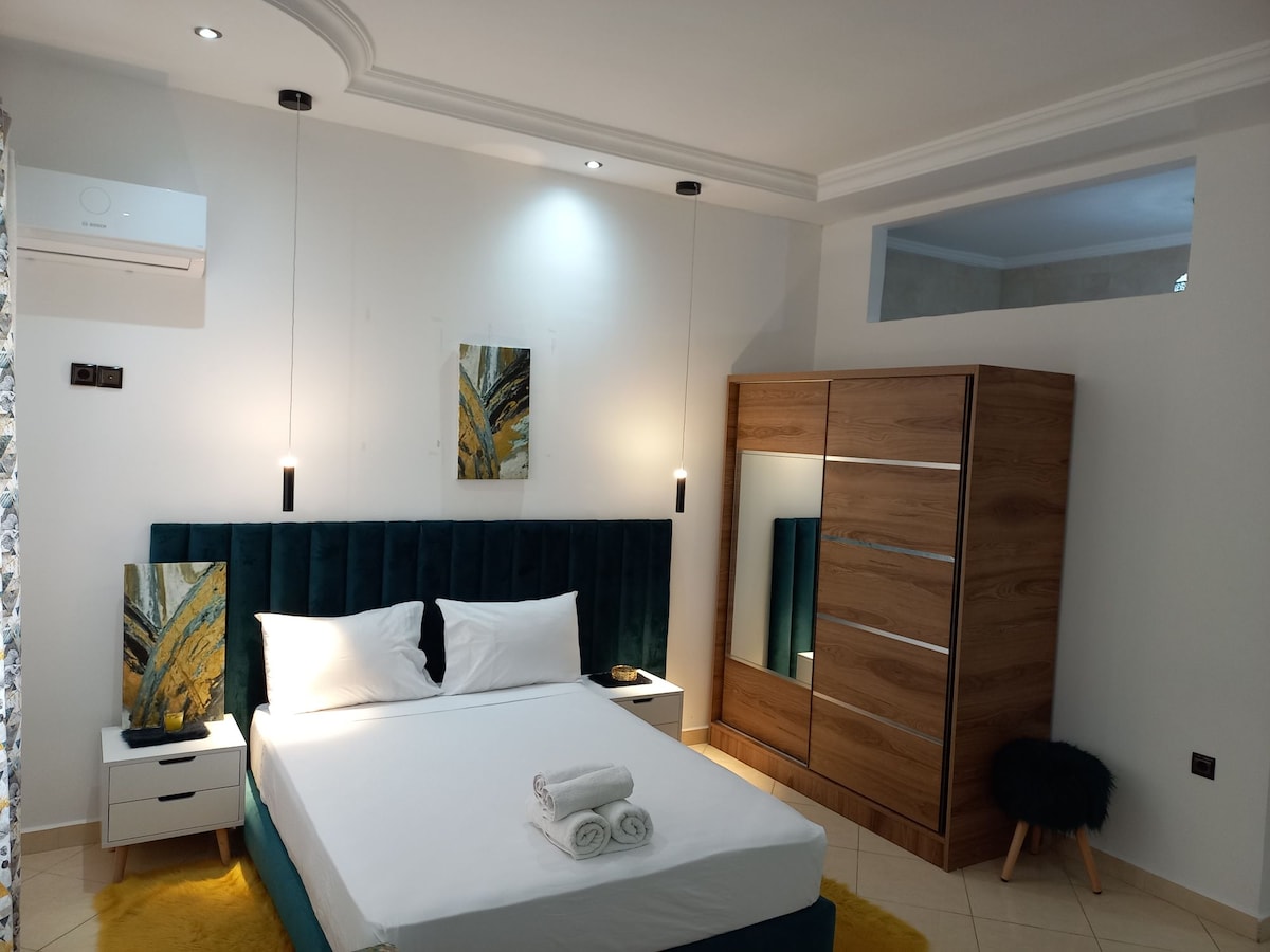 En el corazón de nuestra propiedad, alquilamos un pabellón de encanto oriental, independiente, en los exuberantes y exóticos jardines de una villa del siglo XIX, situada en el barrio residencial y muy popular de Marshan en el centro de Tánger, a 10 minutos a pie de la Kasbah . Gran piscina privada para compartir con los propietarios. La villa «Amazonas» se encuentra en un perímetro real, por lo que es extremadamente segura. Aparcamiento fácil. Desayuno (a partir de las 08:30), limpieza y ropa de cama incluidos.