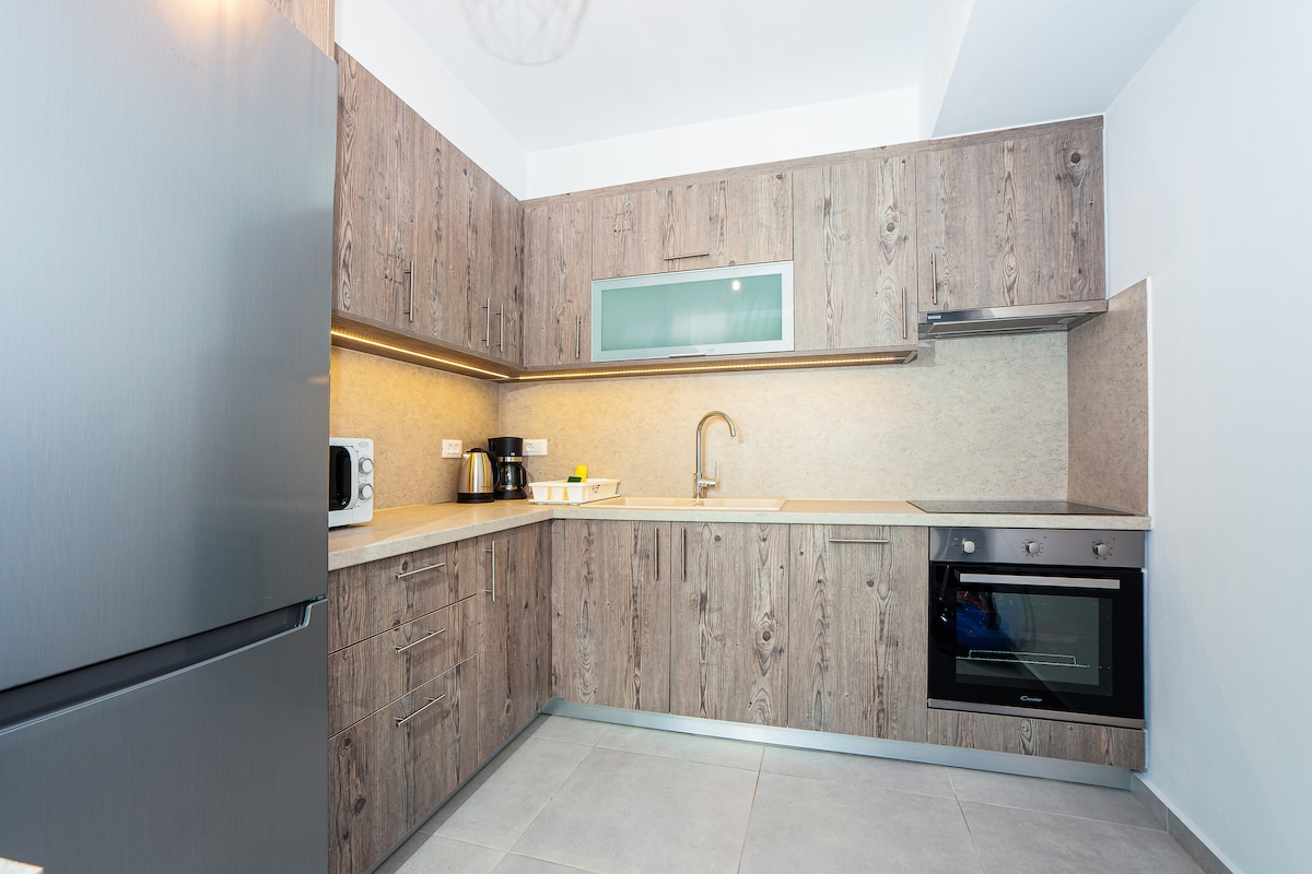 El apartamento de Lucy es un apartamento de nueva construcción, lejos de la playa, a solo 4 minutos a pie. Aquí encontrarás un acogedor apartamento con todos los servicios que necesitas para una estancia acogedora y sin preocupaciones. La sala de estar incluye TV de pantalla plana, sofá cama para 2 personas y cocina nueva con nevera y sala de estar. El dormitorio tiene una cama doble, mesitas de noche con luces y un armario. El baño, con un bonito aspecto de mármol, también contiene una lavadora.