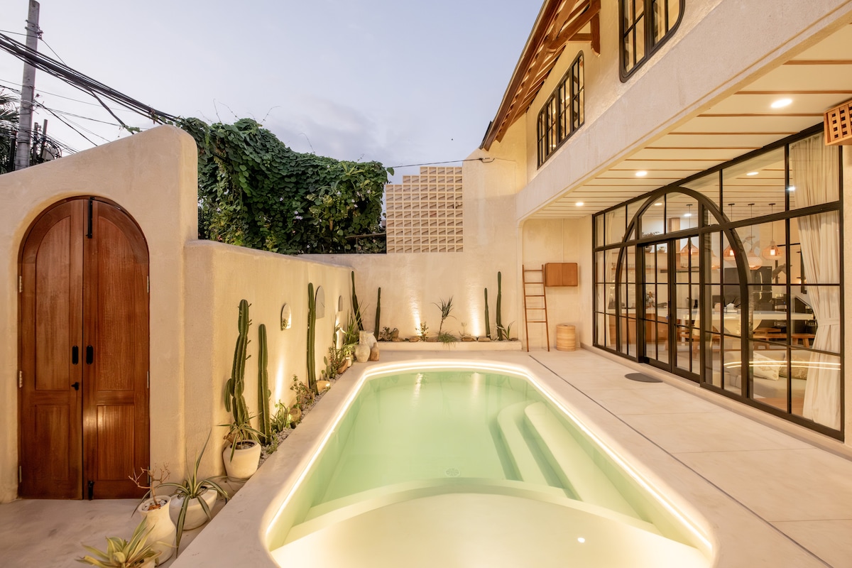 Descubra un encantador refugio tropical en Casa Pumara, una elegante villa de entrepiso con su propia piscina profunda privada. Diseñado con cálida madera natural, elegantes arcos y una hermosa luz natural, el espacio ofrece un ambiente acogedor pero sofisticado. Relájese en el columpio, descanse en la sala de estar a nivel del suelo o disfrute de un momento de paz junto a la piscina rodeada de vegetación tropical. Perfecto para parejas o viajeros que buscan una estancia única y relajante en Bali, convenientemente ubicado cerca de Kerobokan y Denpasar.