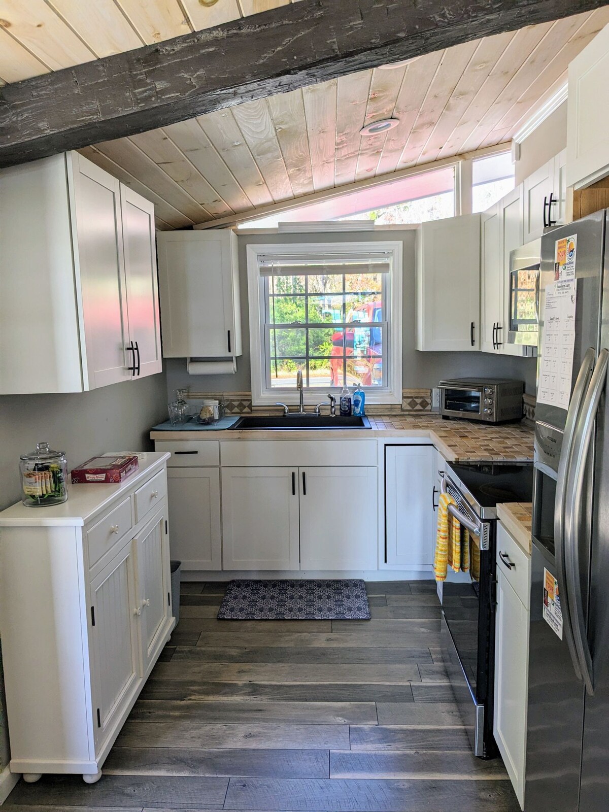 ¡Disfruta de una vida tranquila frente al lago en esta acogedora casa Aframe con vistas espectaculares! Despiértate cada mañana con el sol saliendo sobre el lago, luego llena el día jugando en tu propia playa de arena privada, haciendo kayak, pescando o observando aves. Da un corto paseo hasta el lago más profundo para darte un refrescante baño o ve a caminar por el parque estatal de Bay Tree Lake, que está a la vuelta de la esquina. ¡Prepara una comida fabulosa en la gran cocina abierta y termina la noche con s'mores junto al fuego y estrellas increíbles!