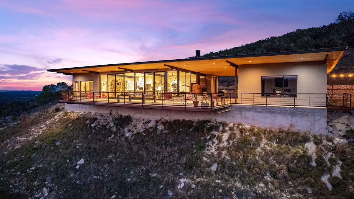 En lo alto de una colina con vistas al magnífico TX Hill Country se encuentra la cabaña con el marco en A más impresionante que jamás hayas visto. Con una mezcla de estilo de mediados de siglo y toques artísticos, este espacio es precioso. La cabaña está escondida en un bolsillo de naturaleza rodeado de 3 acres de robles, olmos y enebros. Las amplias ventanas delanteras y la terraza elevada ofrecen una increíble vista del atardecer a través de las colinas y la iluminación del cielo oscuro prepara el escenario para unos impresionantes cielos estrellados. ¡El jacuzzi y la ducha exterior son la guinda del pastel!