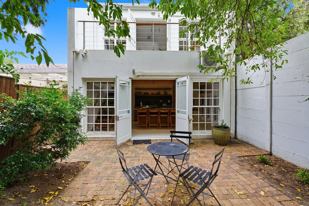 Una tranquila casa de campo privada con cocina en un frondoso jardín con un patio lleno de flores y estacionamiento cubierto. Lavandería y barbacoa. Refrigerador, microondas, horno termoventilador, placa de gas, hervidor, tostadora, sartén eléctrica. Paños de cocina, vajilla y utensilios de cocina. Internet y televisión por satélite incluidos. Aire acondicionado y calefacción. Toallas, ropa de cama, etc. El baño tiene secador de pelo y enchufe para afeitadora. Fácil acceso a Ciudad del Cabo y a poca distancia a pie de cafeterías/restaurantes, peluquería y salón de belleza.