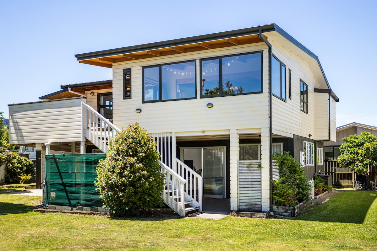 ¡Vistas impresionantes, ubicación impresionante, paseo privado a la playa con todo lo necesario para tu mejor estancia! Taid View se encuentra en la península de Wyuna Bay con vistas al agua a ambos lados. A 4 km de la ciudad de Coromandel, que está a una caminata saludable (¡si estás en forma!) o a 5 minutos en coche. Cocina totalmente equipada, barbacoa, kayaks, juegos, libros y sistema de música para que tu estancia sea inolvidable. Hay una cuna disponible a 60 USD para la estancia, los bebés se cobran a una tarifa de huésped adicional si se requiere una cama.