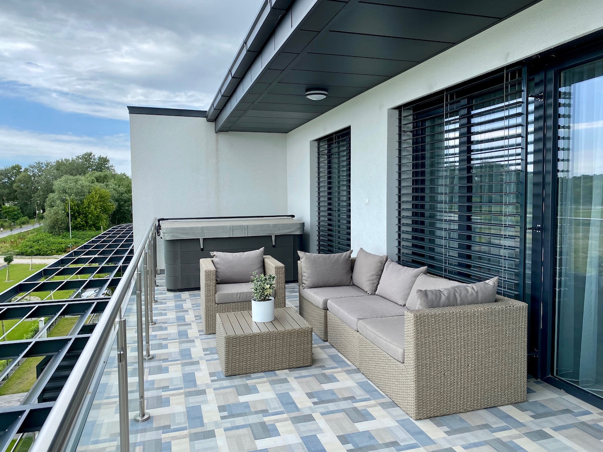 ¿Te gustaría relajarte en un apartamento de lujo verdaderamente único, con un ambiente cercano al agua? ¡Te esperamos en nuestro apartamento equipado con todas las comodidades! ¡A solo 5 minutos a pie del puerto deportivo y de la playa de Libás! Apartamento de 3 habitaciones de nueva construcción, 110 m2, tipo ático, en un parque con árboles centenarios. 67 m2: salón con cocina americana + 2 dormitorios + rincón de trabajo + 1 baño + 2 aseos con 2 WC + recibidor. Terraza circular de 37 m2, con salida independiente desde cada habitación. Internet: 300/150 mb/s ¡Junto al lago Balaton, sin miradas indiscretas!