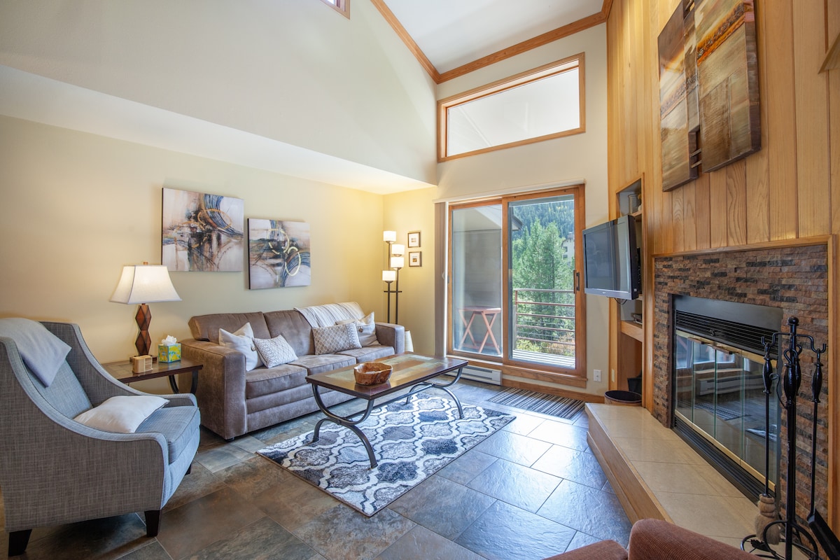 ¡Bienvenido a nuestro luminoso apartamento de 1 dormitorio en el corazón de River Run Village (Keystone Mountain)! ¡Evita los autobuses hasta los remontes, ya que este apartamento está a 3 minutos a pie de la telecabina! Este apartamento tiene capacidad para cuatro personas y cuenta con un dormitorio privado con cama tamaño king, así como una unidad actualizada con encimeras de granito. Disfruta de tu bebida favorita mientras tomas el sol y vistas espectaculares de las pistas, ya sea en el interior calentado por el fuego o en el exterior en tu propio balcón privado.