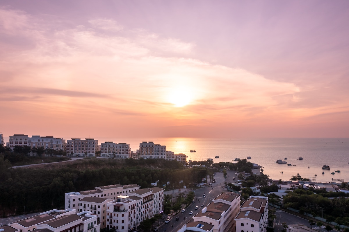 Este estudio está en Sunset Town (28 m²). Como anfitrión de una startup, me he esforzado mucho en crear un espacio cómodo y elegante para que los huéspedes disfruten. Acceso gratuito a una piscina infinita, club infantil y gimnasio A 5 minutos a pie de la estación de teleférico, el mercado nocturno y el supermercado A 7 minutos en auto de la playa de Khem. Uno de sus aspectos más destacados: fuegos artificiales nocturnos desde el balcón y una impresionante puesta de sol desde la piscina infinita de la azotea. Espero que este espacio se sienta como tu hogar lejos de casa.