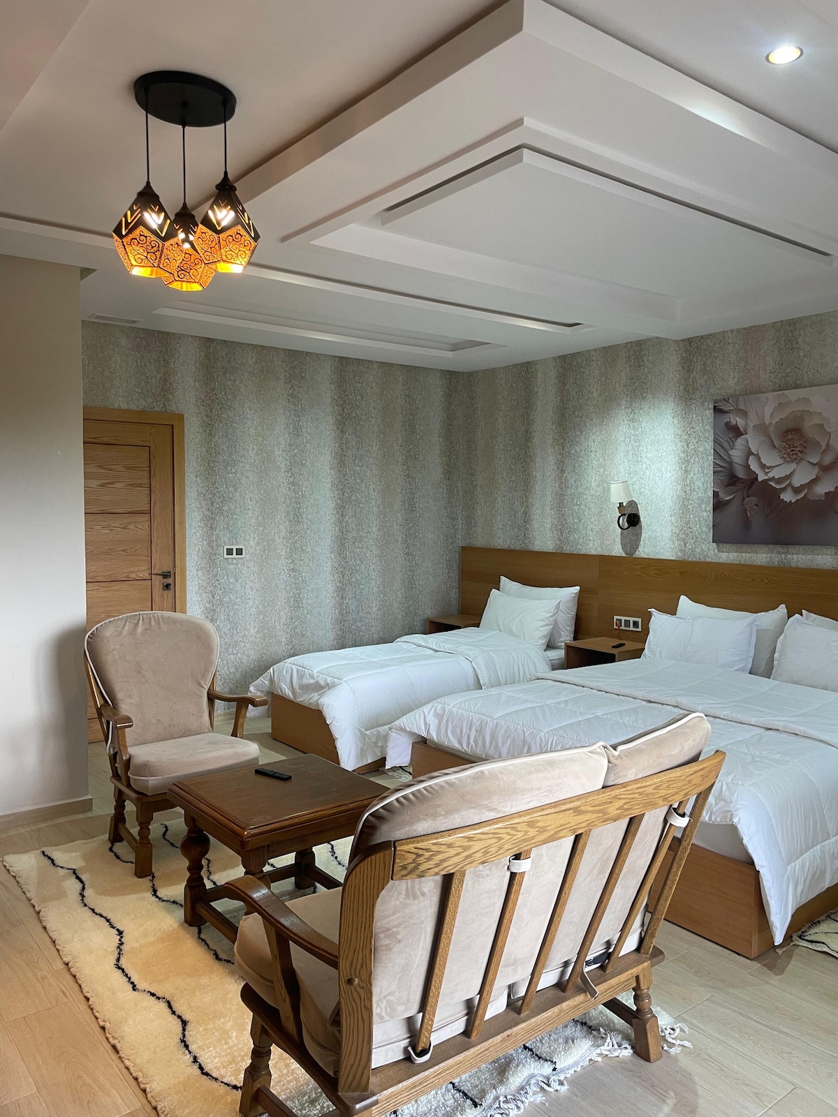 Según la ley marroquí, las parejas no casadas están prohibidas. Cree recuerdos en este alojamiento único y familiar. Departamento en la planta baja, ideal para descubrir Khenifra y sus alrededores. Un dormitorio principal con ducha, dos salas de estar (una grande y otra pequeña) con TV y wifi. Cerca de todos los comercios, tranquilo y fresco sin aire acondicionado. Perfecto para explorar los lagos, los bosques de cedros y las cascadas durante el día, y disfrutar del animado ambiente de la ciudad por la noche.