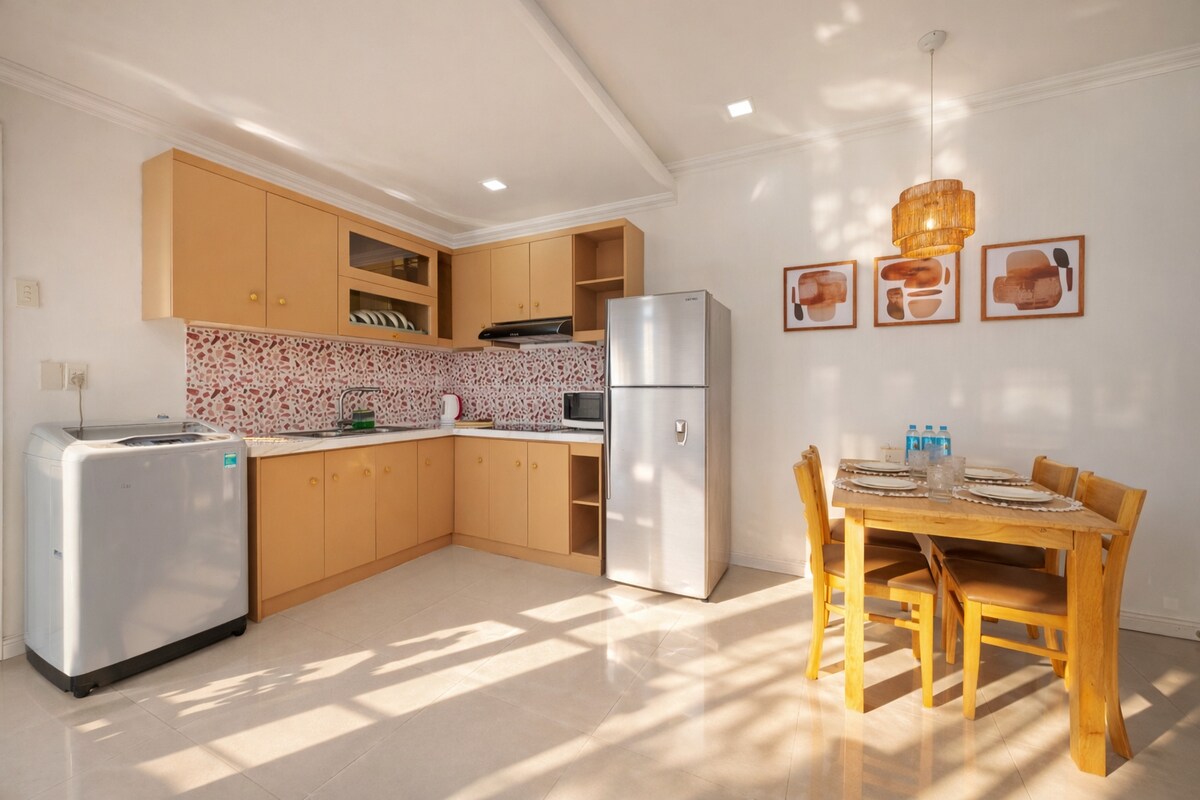 Este lujoso apartamento ofrece un dormitorio separado y cocina completa, a solo 500 metros de la playa de My Khe, que es el lugar perfecto para tu escapada. El apartamento forma parte de una pequeña y dulce villa de 3 niveles. Como parte de su encanto único, encontrarás escaleras en lugar de un ascensor, un pequeño detalle que hace que la villa se sienta aún más hogareña y acogedora. Con el lema “May Home es donde está el corazón”, siempre te sentirás bienvenido por nuestro equipo, con una estadía cómoda e inolvidable.