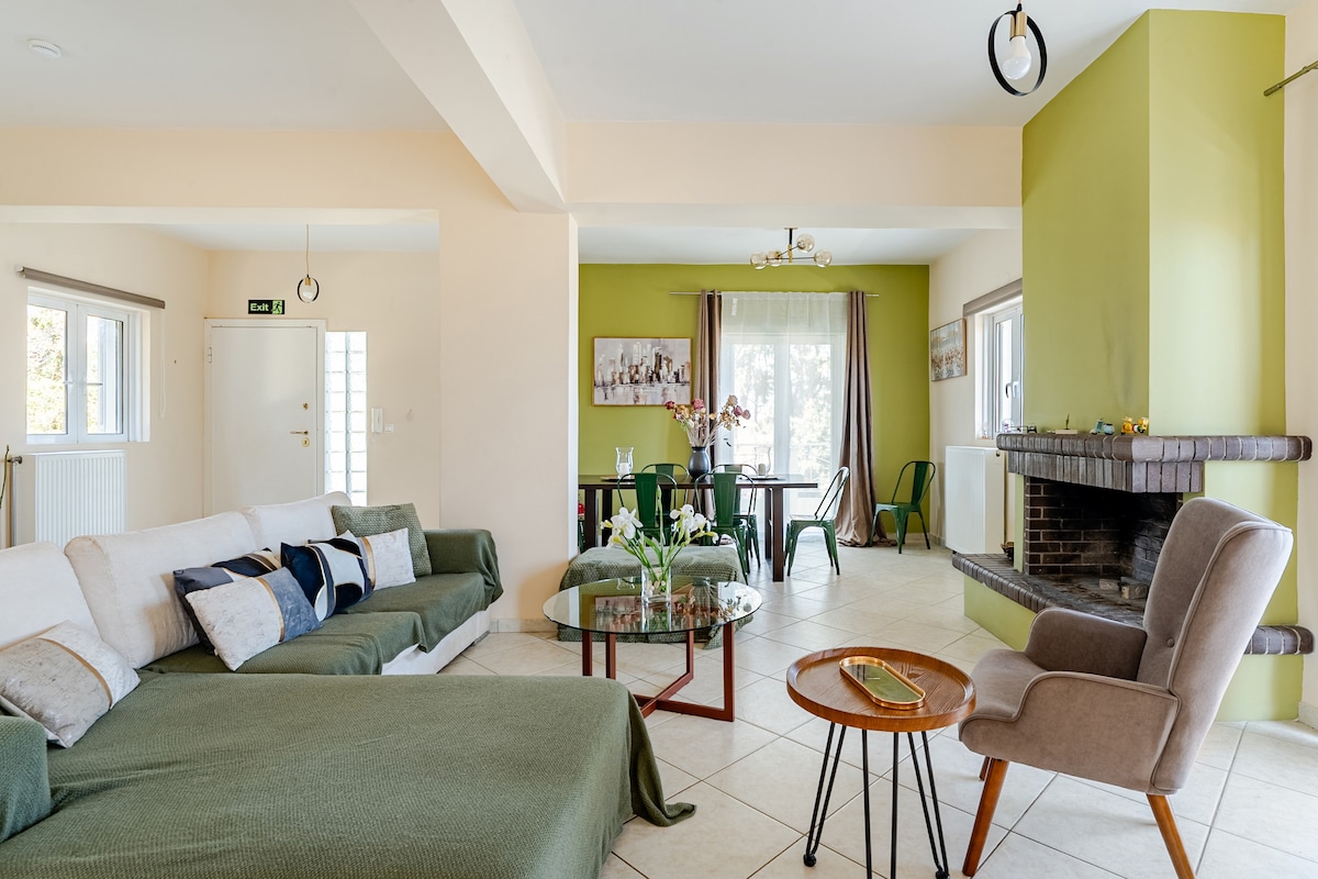 Descubre la mejor experiencia de relajación en esta lujosa residencia en Loutraki, ideal para familias o grupos de amigos. Nuestra casa combina comodidad, la serenidad de la naturaleza y la proximidad al mar. Se encuentra a solo 2,5 km del centro de Loutraki, a 1,8 km de la playa y a menos de 1 hora de Atenas, ofreciendo fácil acceso y privacidad. La ubicación es genial para explorar el área más amplia (spas, casinos, excursiones, la antigua Corinto)