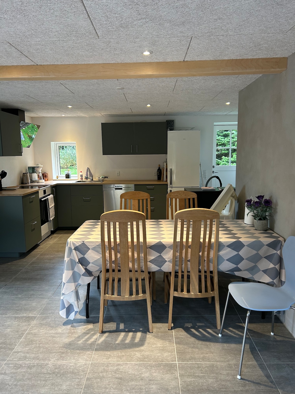 Preciosa casa en el campo donde obtienes mucho espacio por dentro y por fuera. La casa está parcialmente recién construida en 2024/2025 y el resto renovado, entre otras cosas, con un nuevo baño, camas y muebles. El alojamiento cuenta con vestíbulo de entrada, cocina/sala de estar grande, sala de estar, baño y 3 dormitorios, área de 131 m2. Distancia a Legoland 12 km. Preciosa zona al aire libre con lago, fogata y jardín de manzanas. Ropa de cama, toallas, paños de cocina, toallas de cocina, etc. incluidos.
