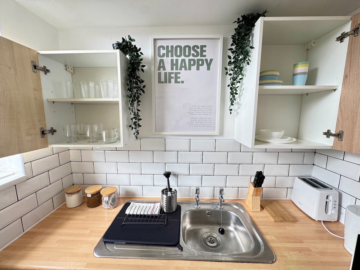 The Garden Room is warmly, welcoming and complete with all essential equipment. It consists of a king-sized bed in the main bedroom with separate bathroom with freestanding bath and separate shower. The bedroom area is open plan with the living area. Brand new fitted kitchen with washing machine, dishwasher and all essential equipment. Located in Kidderminster. 10 minute walk from town. Ideal location for visits to Safari park, Severn Valley railway and local countryside.