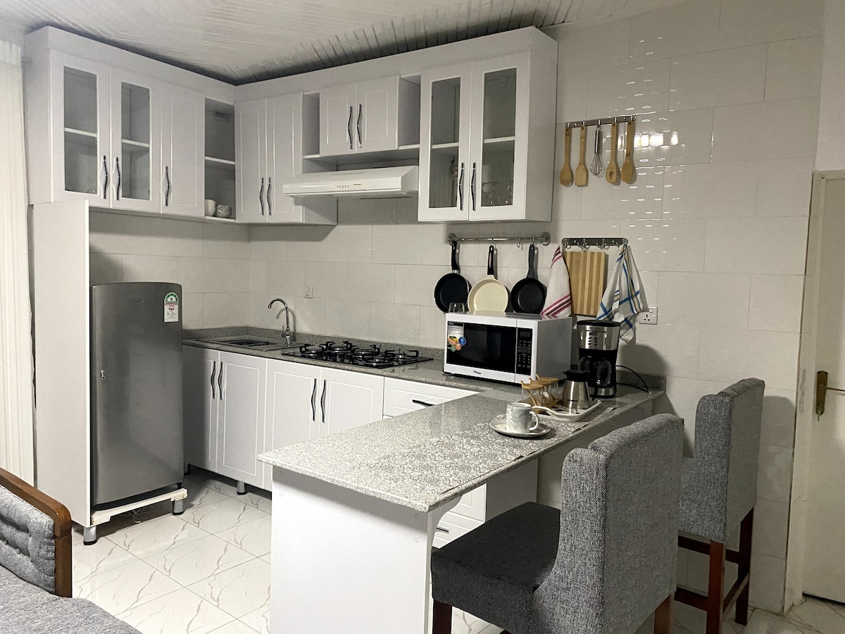 Explora el vibrante corazón de Kigali desde nuestra acogedora casa de huéspedes de dos dormitorios. Características principales: - Cocina totalmente equipada. - Servicios modernos: disfruta de wifi de alta velocidad y un Firestick con acceso a un amplio paquete de 10 000 canales para tus necesidades de entretenimiento. Ubicación privilegiada: En Kigali, fácil acceso a centros culturales, gastronómicos y de negocios. Camina hasta mercados, cafeterías y museos. Ideal para viajeros de negocios, cerca de distritos clave y centros de transporte. - A 20 minutos a pie de BK Arena y del Centro de Convenciones de Kigali.
