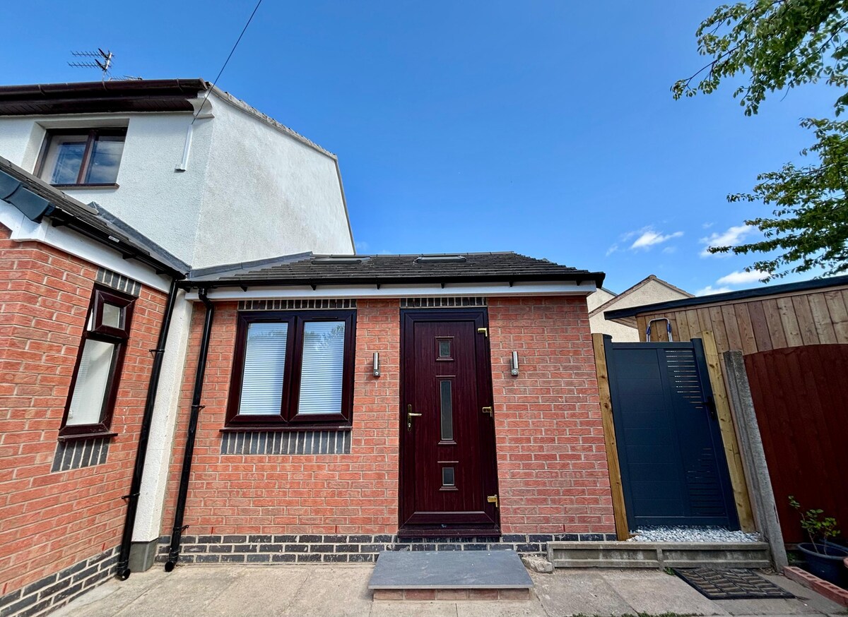 Una casa de huéspedes en el jardín de mi casa con todo lo necesario para disfrutar de una estancia cómoda y tranquila. Cocina totalmente equipada y lavadora, mucho espacio para relajarse y mucho espacio de almacenamiento. El wifi es superrápido y hay una mesa perfecta para trabajar. Es conveniente para ambas universidades, Leicester City FC, Grace Road y los Tigres, Curve, LRI, el hipódromo y De Montfort Hall, además de la catedral y la tumba de Ricardo III. A poca distancia a pie de muchos bares, restaurantes, tiendas y espacios verdes.