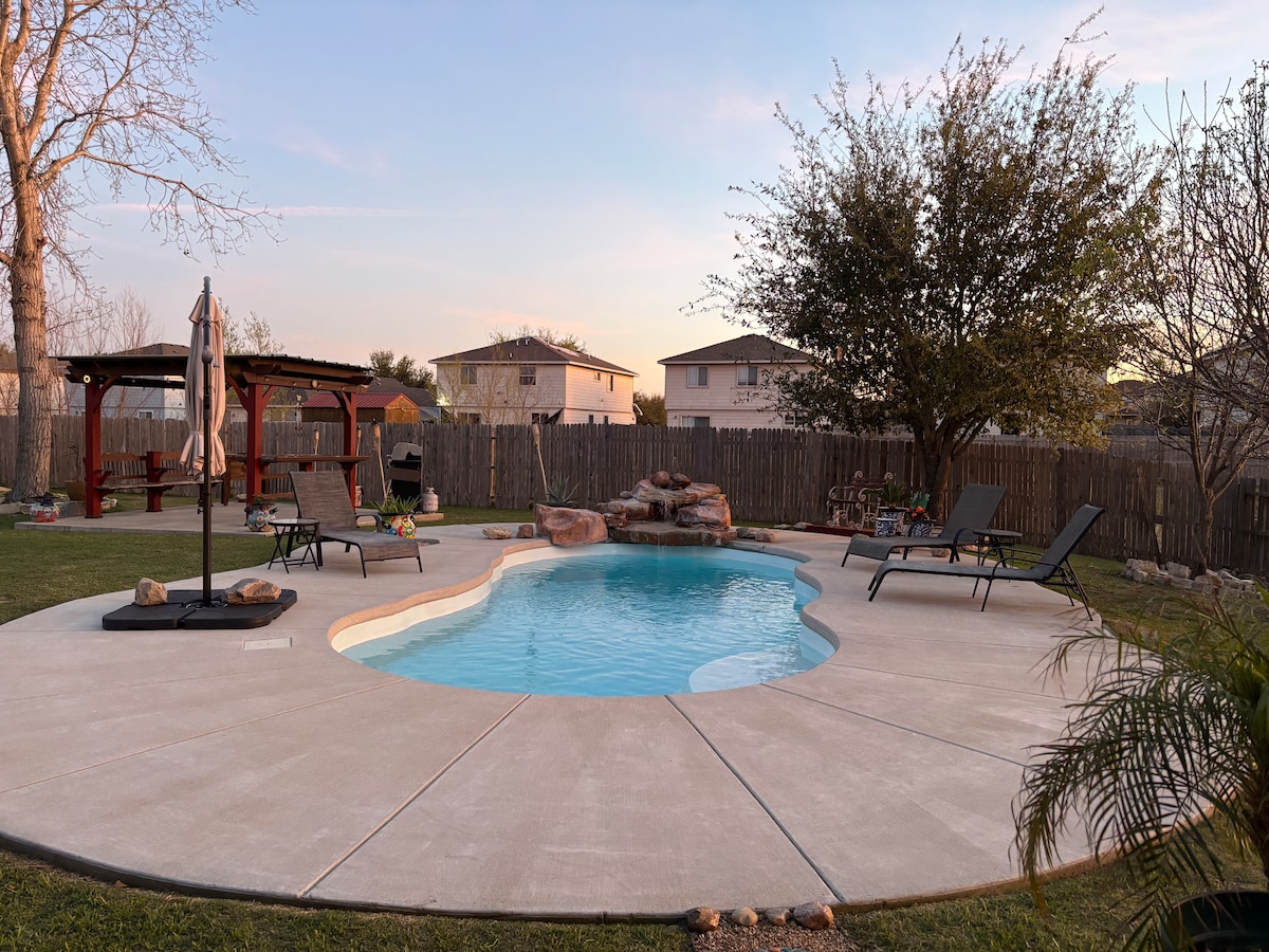 Bienvenido a nuestra lujosa casa ubicada en Texas Hill Country. Esta impresionante propiedad cuenta con todo lo necesario para pasar unas vacaciones verdaderamente memorables. La bañera de hidromasaje climatizada de gran tamaño y la piscina están adornadas con cascadas y un emocionante tobogán de agua que garantiza una diversión sin fin para los huéspedes de todas las edades. Disfruta de la tranquilidad del campo sin dejar de estar al alcance de atracciones populares y pueblos encantadores. Este alojamiento ofrece el entorno perfecto para una experiencia inolvidable.