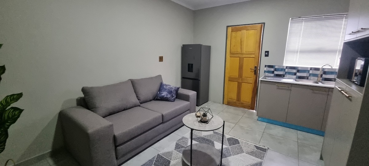 ¡Te damos la bienvenida a nuestro acogedor Airbnb! Ubicado en un barrio seguro y sereno, nuestro espacioso refugio cuenta con una cómoda cama doble y un baño privado. Mantente entretenido con un televisor inteligente, mantente fresco con aire acondicionado. ¿Necesitas ponerte al día con el trabajo? Tenemos un escritorio exclusivo. Disfruta de nuestra zona privada braai al aire libre. Con un amplio espacio de almacenamiento, incluido un armario y una nevera, tu estancia será cómoda y conveniente. ¡Ven a disfrutar de la mejor hospitalidad en nuestra encantadora residencia independiente!