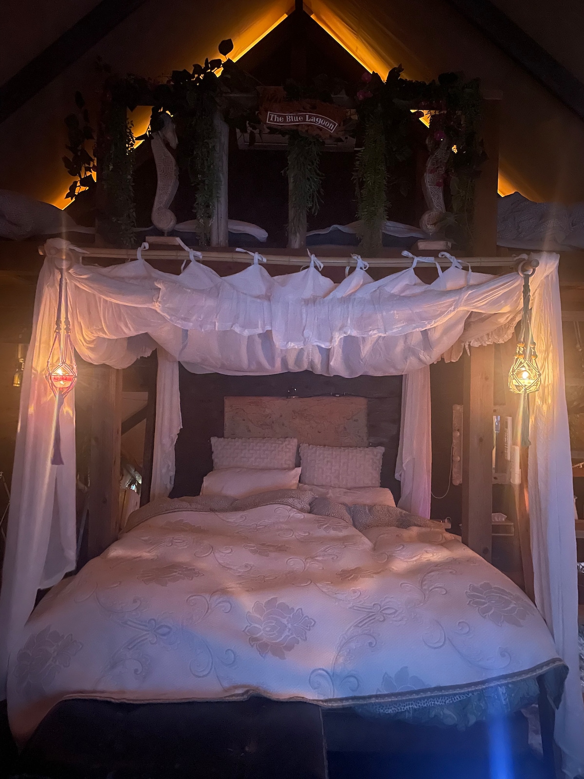 Bo Bo Village, Tateyama 2 Marzo de 2026: cabaña rosa, carpa grande, parrilla, fogata y fuegos artificiales