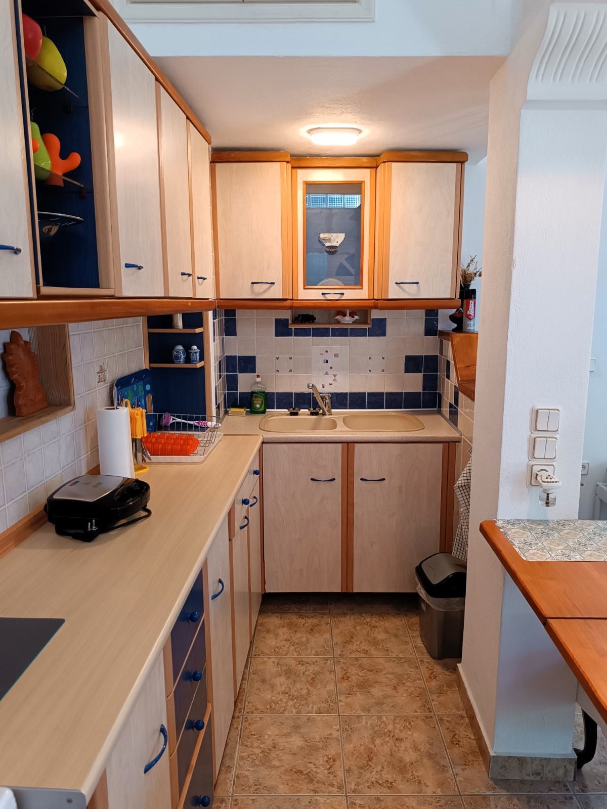 Das traditionelle Steinhaus grenzt an einer Seite an die natürliche Felswand. Das Bad ist ganz in den Fels hinein gebaut. Das ergibt ein ganz spektakuläres Wohngefühl und den Eindruck, mitten in der Natur zu sein. Die Terrasse hat eine wunderschöne Aussicht auf das Meer, den Strand von Fytema und die Berge von Messaria. Die Wohnung ist 2023 mit ökologischen Materialien im traditionellen Stil ausgebaut worden. Zum Strand sind es nur 200 m.