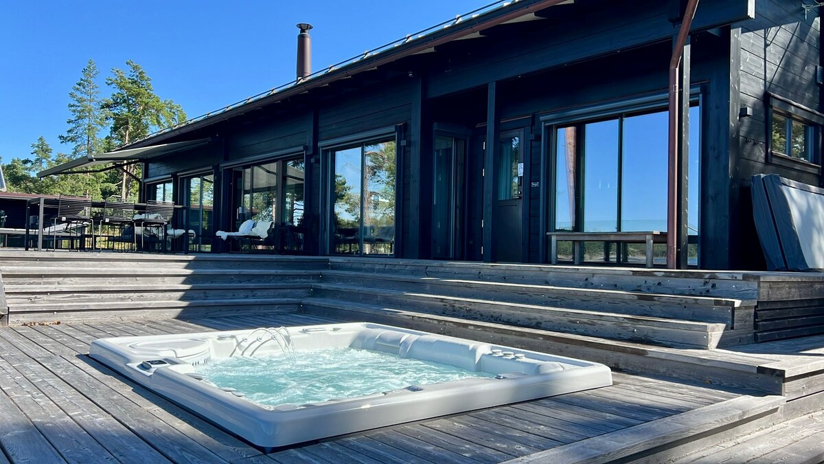 ¡Bienvenido a relajarte en una casa de campo moderna recién terminada con impresionantes vistas desde sus grandes ventanales sobre los campos! En el bosque alrededor de la cabaña, puedes ir de excursión, setas y recoger bayas, y en un kilómetro se encuentra el pintoresco lago Gölen. La cabaña se encuentra cerca de la herrería de Billnäs, y el Fiskars Village, con sus restaurantes y boutiques, también está a poca distancia en bicicleta. Una sauna tradicional de leña, de libre acceso para los inquilinos, ofrece vapor profundo y húmedo.