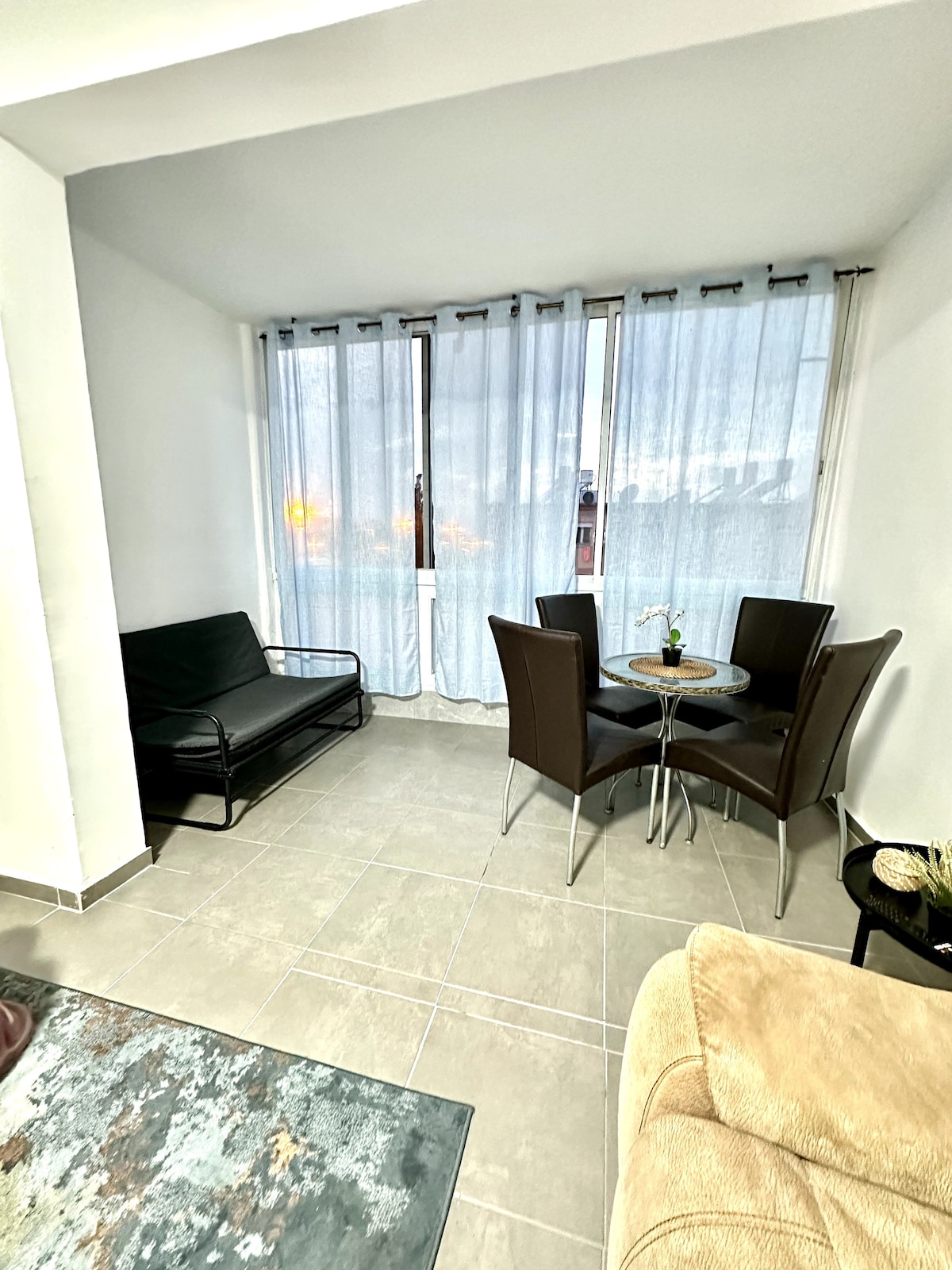Apartamento hermoso, agradable y luminoso en la parte tranquila del barrio de Hadar. *Refugio en un edificio cercano (a 80 m de distancia) Un dormitorio ventilado y una sala de estar con salida a un impresionante balcón. Nuevos aparatos de aire acondicionado y vistas al mar desde todas las habitaciones. Cocina totalmente equipada con salida a otro balcón. Inodoro y ducha separados, baño lujoso con excelente flujo, internet de alta velocidad, estacionamiento gratuito en parte de la calle, excelente transporte público y una tienda de comestibles debajo de la casa. Dulce apartamento de 1 dormitorio con excelentes vistas al mar y mucho aire, luz, tranquilo y silencioso. Amplio dormitorio y acogedora sala de estar, cocina totalmente equipada, bañera, aire acondicionado e internet potentes, estacionamiento gratuito.