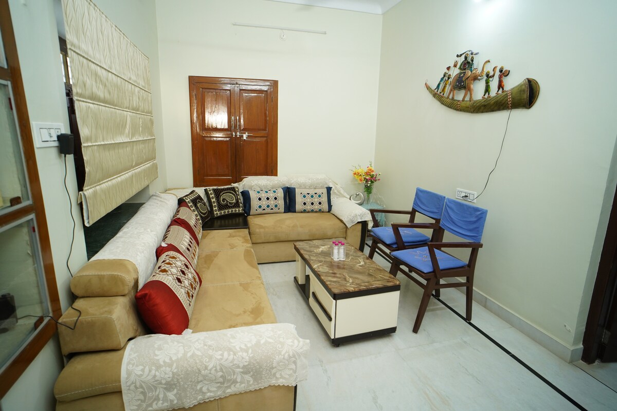 ***Apto para familias **No es un lugar para fiestas *** Pushpshree es una casa reconvertida que ahora funciona como una casa de familia ubicada cerca del lago Ana Sagar en Ajmer, Rajasthan. Proporciona una estadía tranquila y cómoda lejos del ajetreo de la ciudad. La casa de familia tiene habitaciones amplias y bien equipadas con comodidades modernas. Si bien es una villa de autoservicio con servicios básicos, no es una propiedad de lujo ni un hotel. Espera que el lugar ofrezca una sensación de estar en casa.